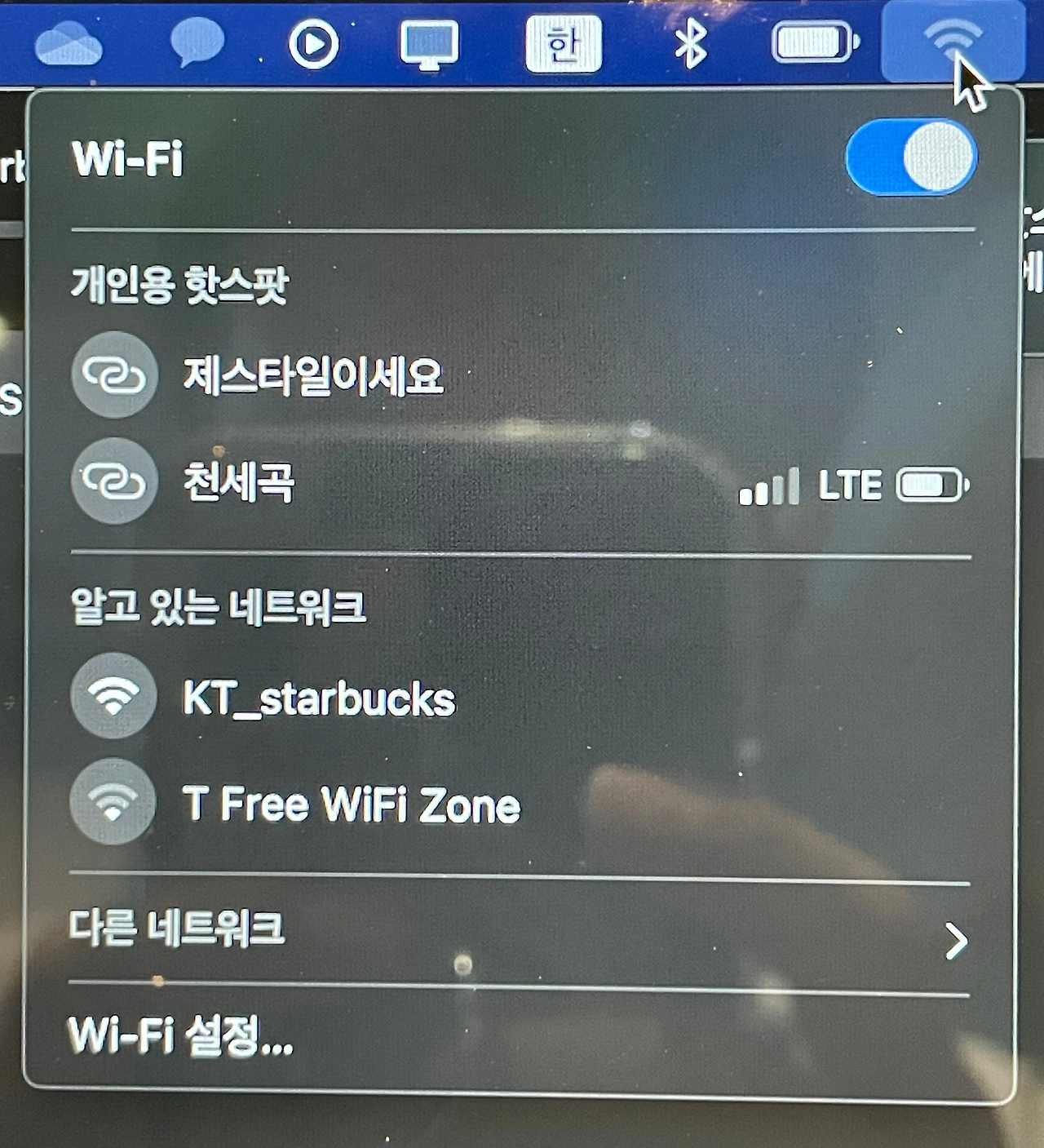 순간 나는 마시던 커피를 뿜고 말았다. 와이파이 창 위에 있는 개인용 핫스팟* 이름 때문이었다. 이렇게 적혀 있었다.