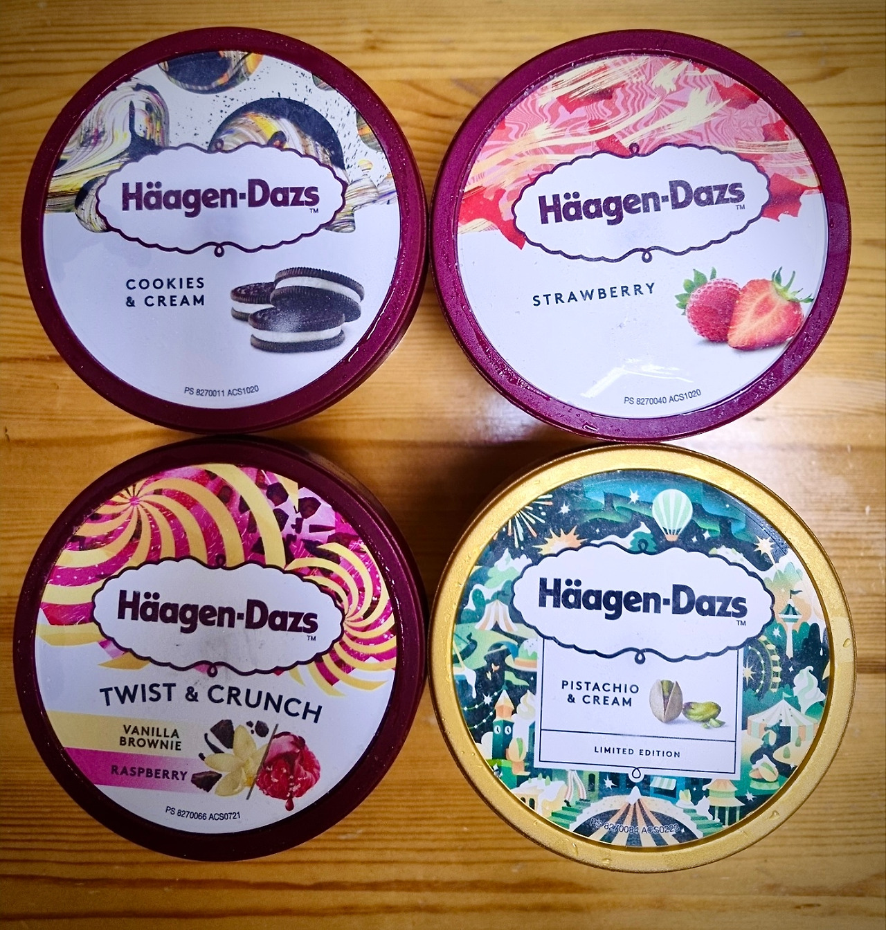 그러던 어느 날, 편의점에 붙은 ‘하겐다즈 4종 세일’ 이벤트 광고를 보게 되었다. 예전 같았으면 눈길도 주지 않았을 나인데, 4개를 한 번에 사면 할인을 해준다는 말이 솔깃했다.