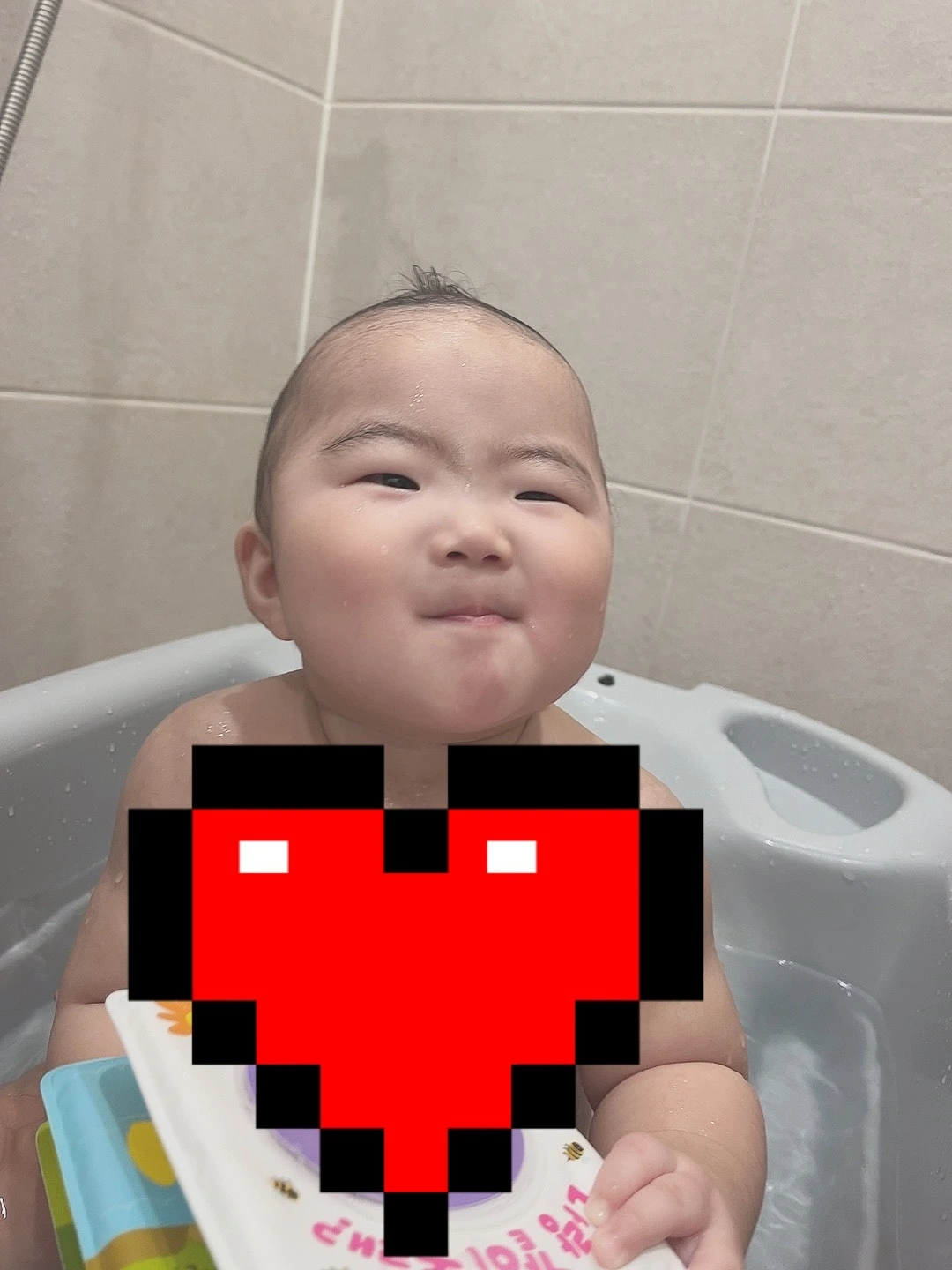머리를 헹구고 보면 아가 두상이 참 예쁘다는 걸 느껴. 일단 얼굴이 작게 태어난 것 같고, 엄마를 닮아서 앞통수가 튀어나와 있네. 엄마처럼 옆모습 미인이 되겠지?