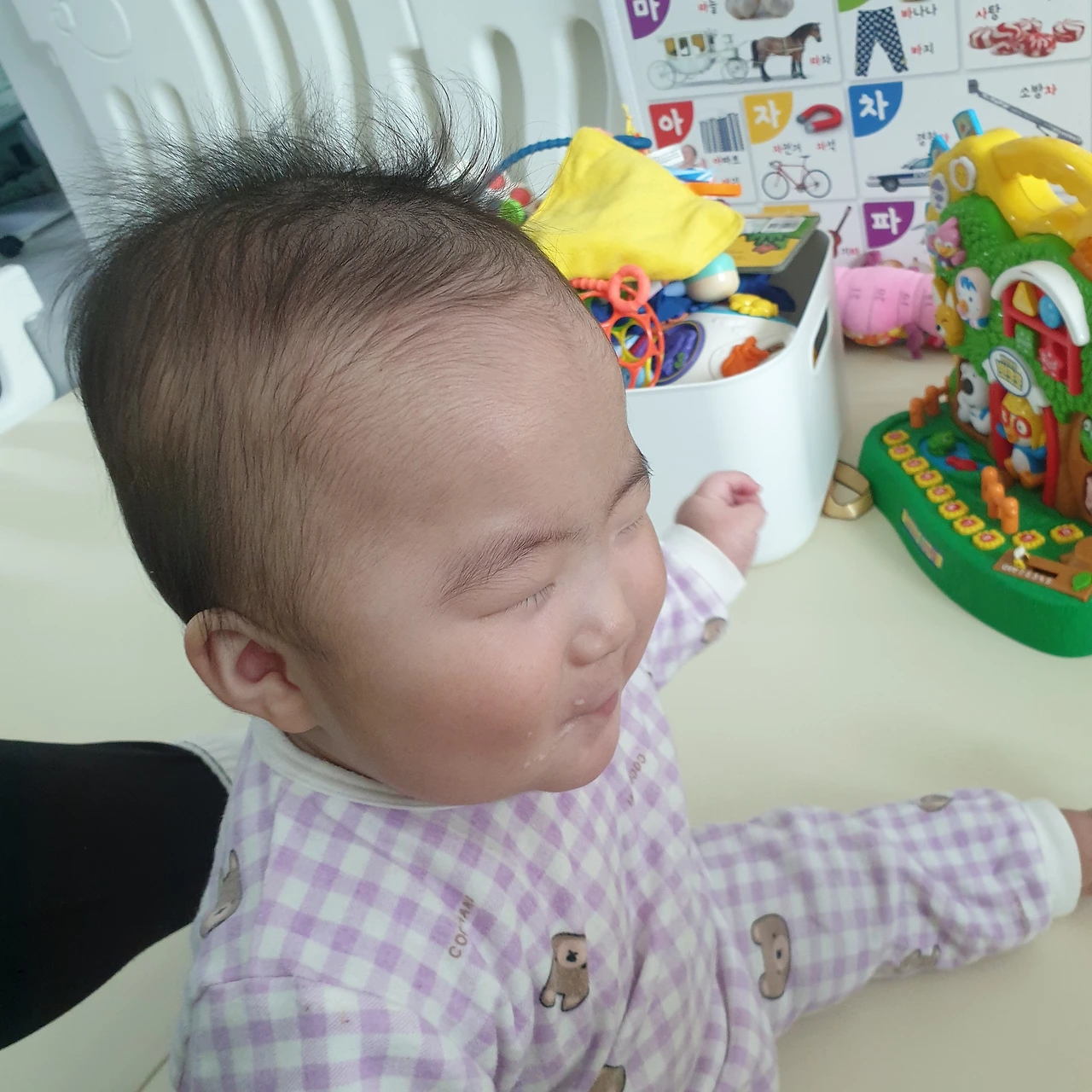 어느새 보니 예쁘게 자리 잡아준 두상을 보면서 아빠는 너무 기분이 좋단다. 콘헤드가 아가가 크면 알아서 자리 잡힌다는 얘기들이 사실이어서 정말 다행이다.