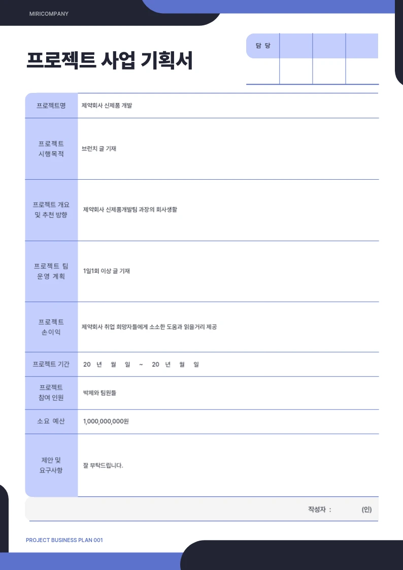제약회사 신제품개발 기획