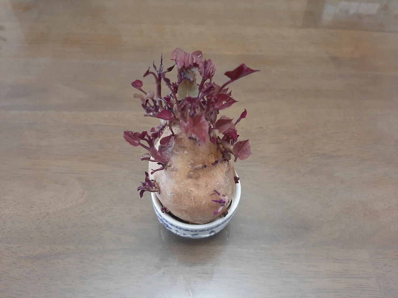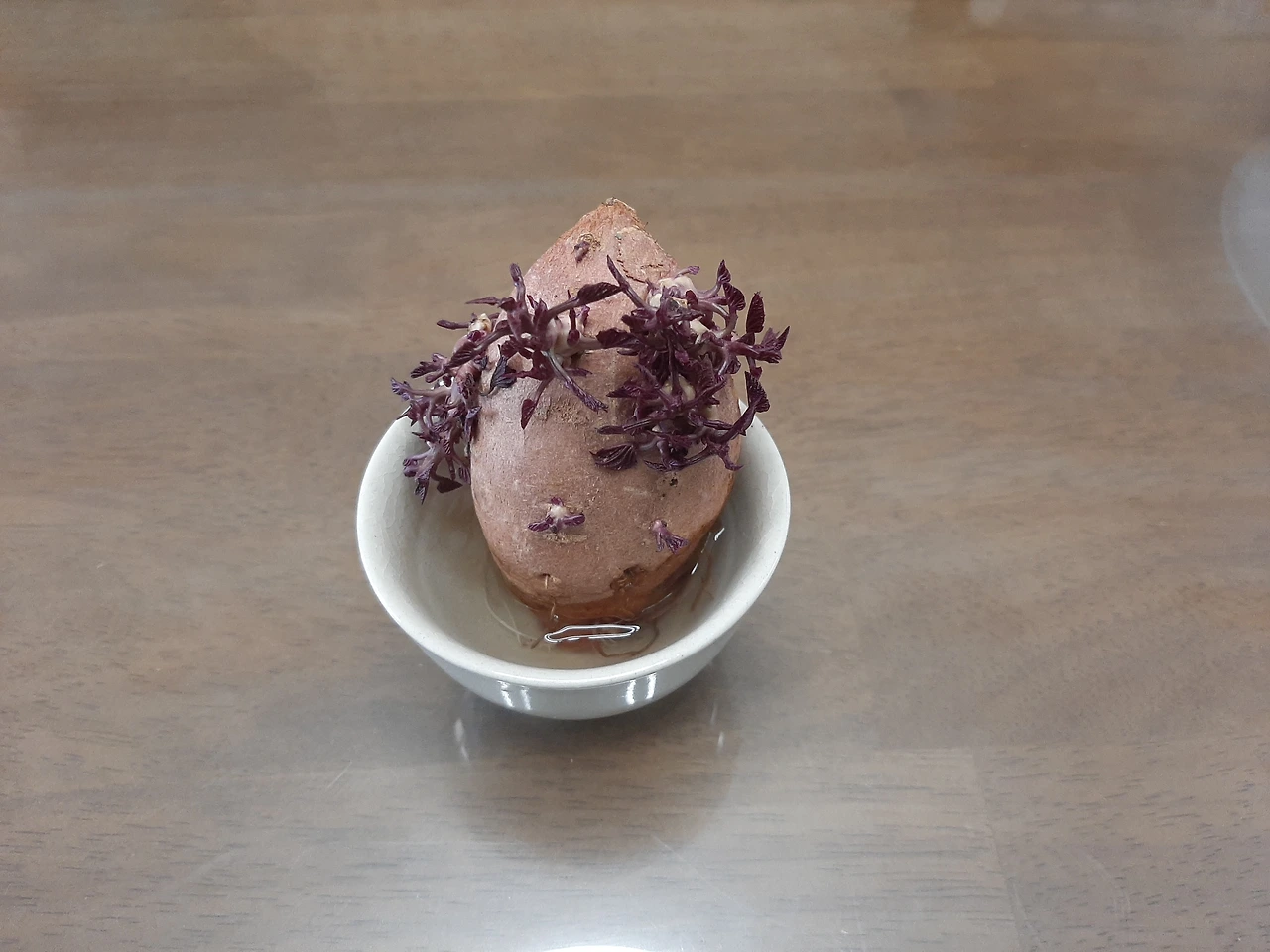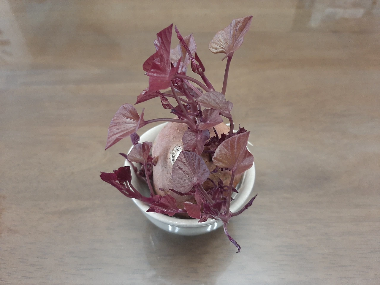 아내가 간식으로 맛있게 먹을 양으로 사들인 녀석들 중 남은 세 개의 고구마였거든요. 아니 이 녀석들이 우리네 무관심에 얼마나 뿔이 났는지 그 구석에서 세 녀석이 몽땅 싹을 틔우며 '우리 여기 있어요!' 항변을 하더라니까요.