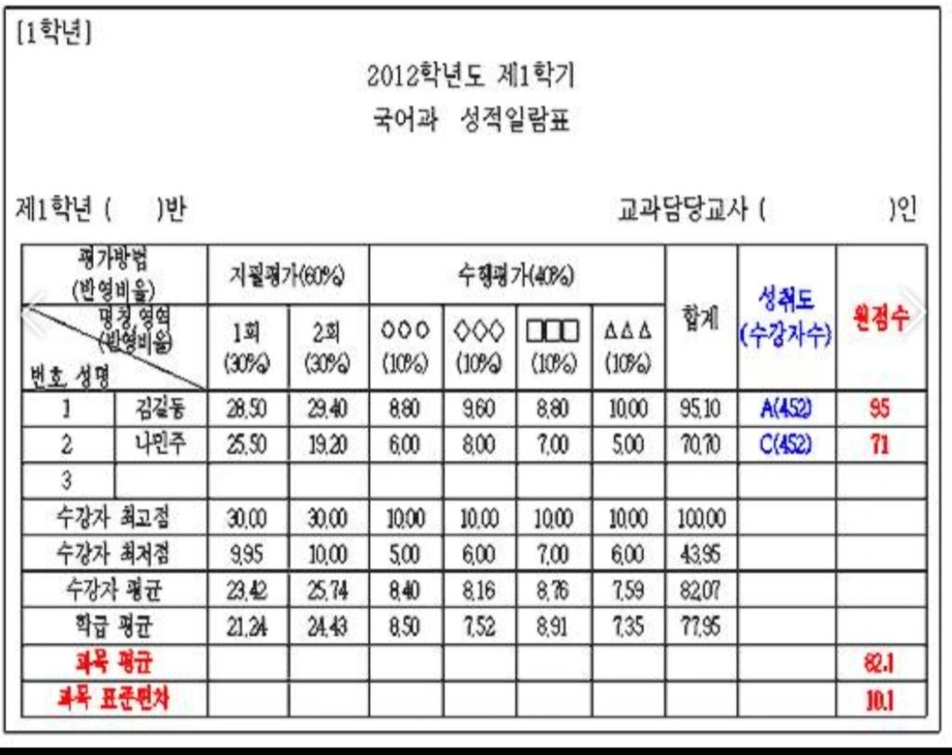 단계를 거쳐 교장까지 결제가 진행되지만 보기 좋게 퇴짜를 맞고 반려되어 다시 내 책상으로 돌아온 성적 전표였다.