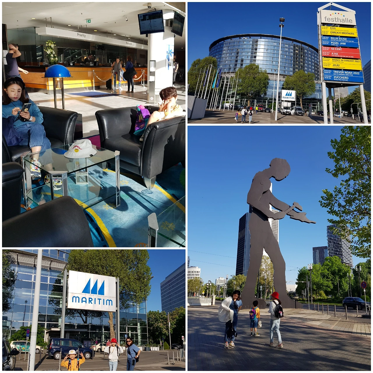 루프트한자 항공 비행기를 탔다. 다음날 독일 뮌헨공항에 도착했다. 손주들은 피로를 느끼는 듯했다. 짐 찾고 뮌헨 공항에서 다시 비행기를 타고 프랑크 푸르트 공항에 도착했다. 숙소인 마리팀 호텔(Maritim Hotel)까지 15시간 이상 걸렸다. 초등학교 저학년인 손주들이 대견해 보였지만, 아직 먼 길 여행은 이르다고 생각했다. 사위가 따라왔으면 난 걱정 생각은 안 했을 것이다.