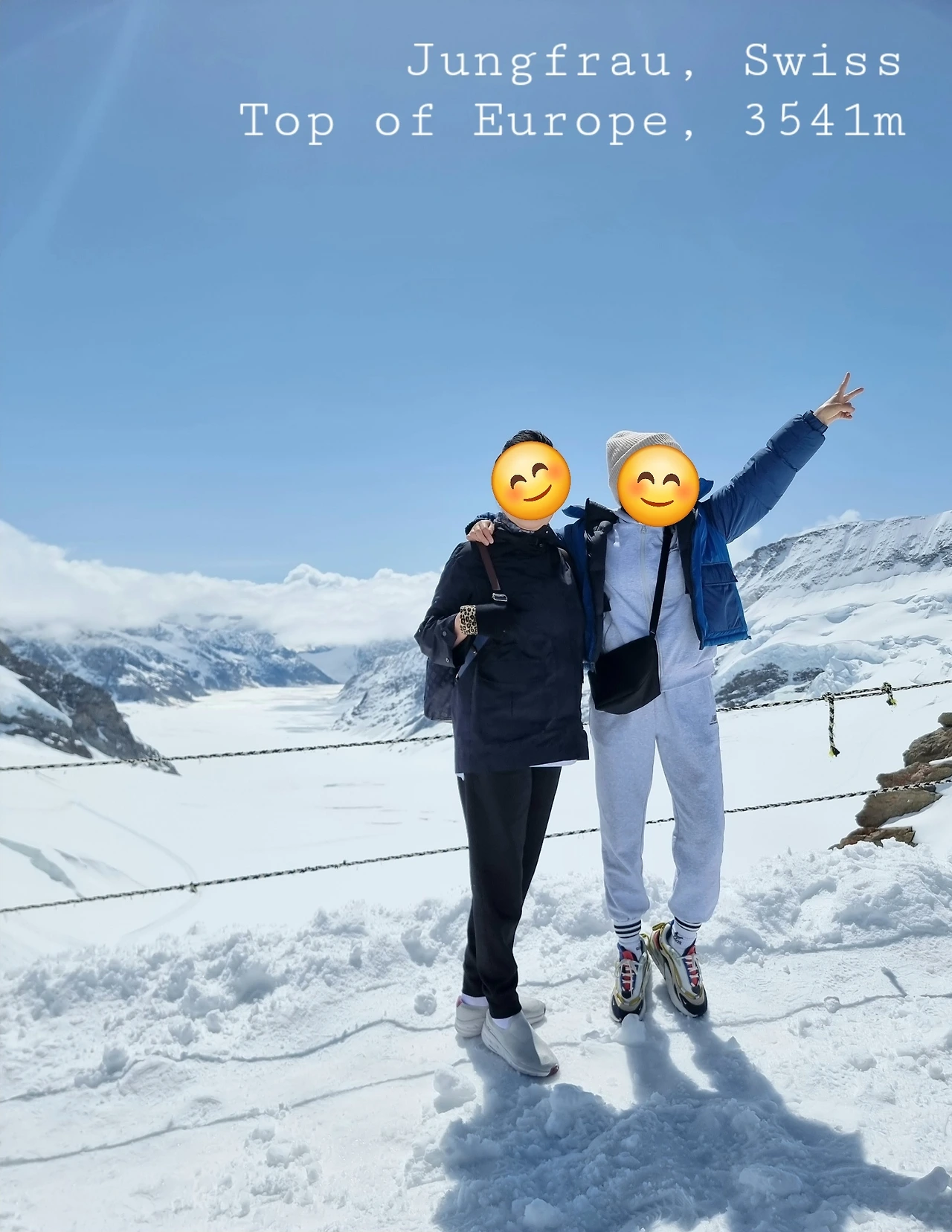 드디어 융프라우 꼭대기에 올랐다. 정상은 평온했고, 날씨가 좋았다. 이곳은 변화무쌍해서 이러다가도 갑자기 안 좋아질 때도 있다고 했다.
