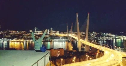 어둑해지는 블라디보스토크 시내를 한눈에 내려다볼 수 있었다. 금각교(2012년)가 내려다 보이고 야경이 멋지다. 내일은 저 금각교를 지나서 루키섬으로 갈 예정이다.