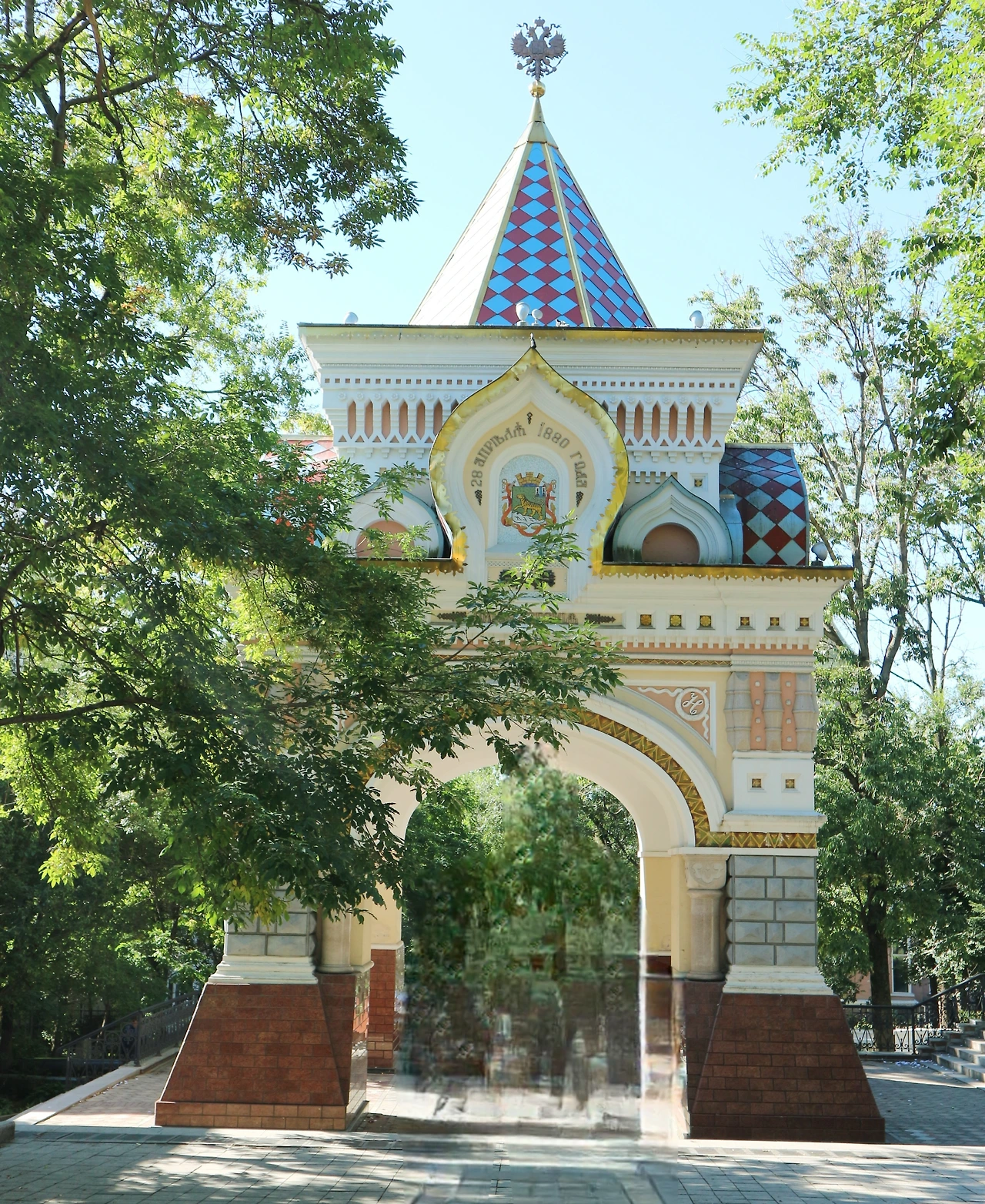 개선문은 1891년 니콜라이 2세(러시아 마지막 황제)가 횡단철도 시공식에 참석했었다는 기념으로 지어졌다고 한다. 산책로를
