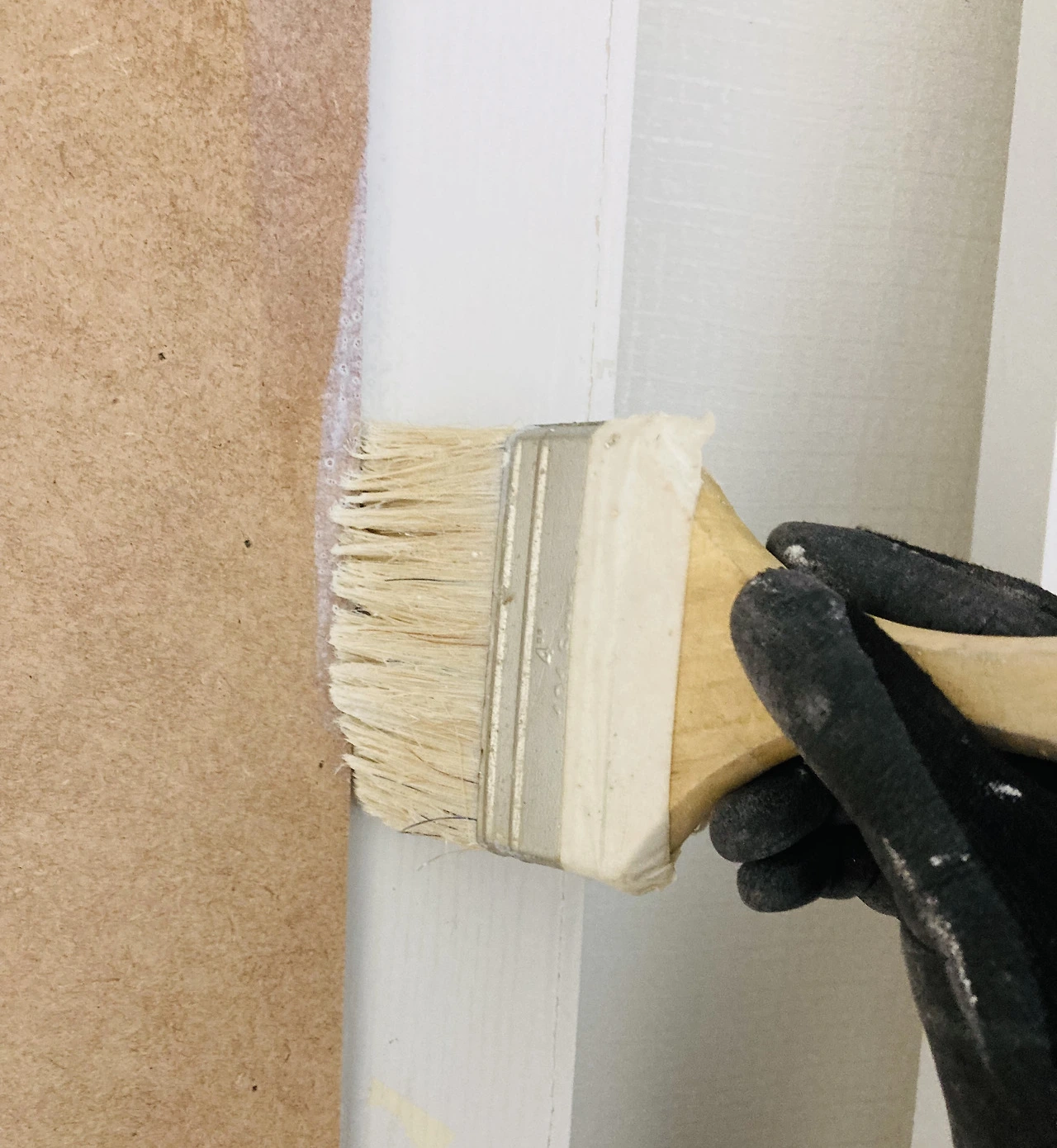 필름 자체에도 접착성이 있지만, 보다 견고하게 붙여주기 위해 접착면에 프라이머(본드)를 발라준다. 프라이머는 수성과 유성이 있고, 환경이나 접착면에 따라 선택하여 사용한다. 프라이머를 바를때엔 자국 없이 빠르게, 그러나 꼼꼼하게 발라주는게 가장 중요하다. 프라이머가 건조되면 잘 티가 안나서 어딜 바르고 안발랐는지 잘 기억하면서 발라줘야 덜 고생한다. (경험담...ㅠ)