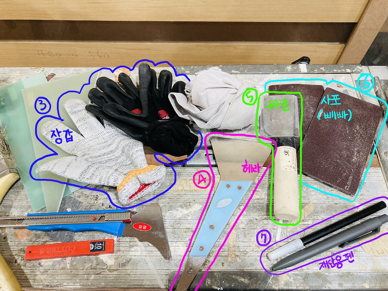 이외에도 현장의 반장님들은 우마, 프라이머, 신나, 열풍기 등 각종 공구들을 차 트렁크가 꽉 차게 가지고 다니시더라구요~