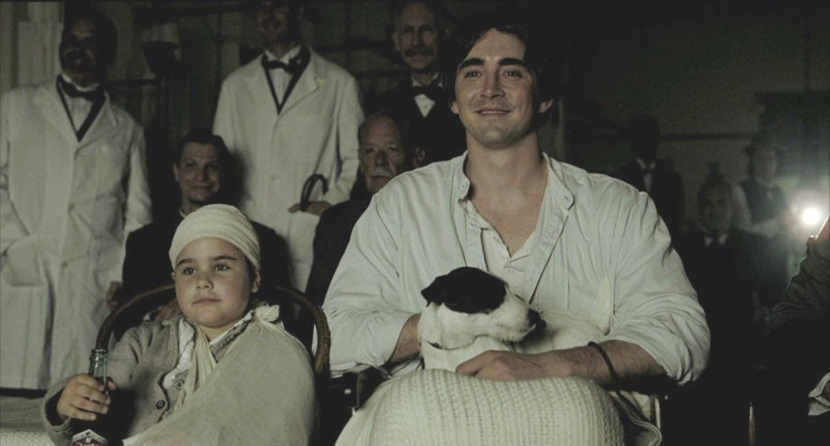 할리우드 스튜디오가 생기고 영화 산업의 역사가 시작되던 시기를 배경으로 하는 영화답게, <더 폴>에는 초기 영화의 모습과 연관된 이미지가 다수 등장한다. 영화 촬영 중 로이가 사고를 겪은 순간을 표현한 오프닝 씬은 명확히 흑백 무성영화를 연상시키는 연출을 이용해 촬영됐다. 알렉산드리아가 로이와 처음 이야기를 나누기 전, 열쇠구멍을 통해 바깥에 서 있는 말의 뒤집힌 그림자가 벽에 드리워지는 장면은 최초 카메라의 원리를 보여 준다. 엔딩 크레딧이 올라가기 전에는 그시절 ‘차력쇼’ 슬랩스틱 영화의 클립들이 수없이 교차편집된다. 이런 장면들을 통해 <더 폴>은 우리가 아는 영화 산업이 처음 어떻게, 어떤 모습으로 등장했는지에 대한 노스탤지어와 경탄을 함께 불러일으킨다.