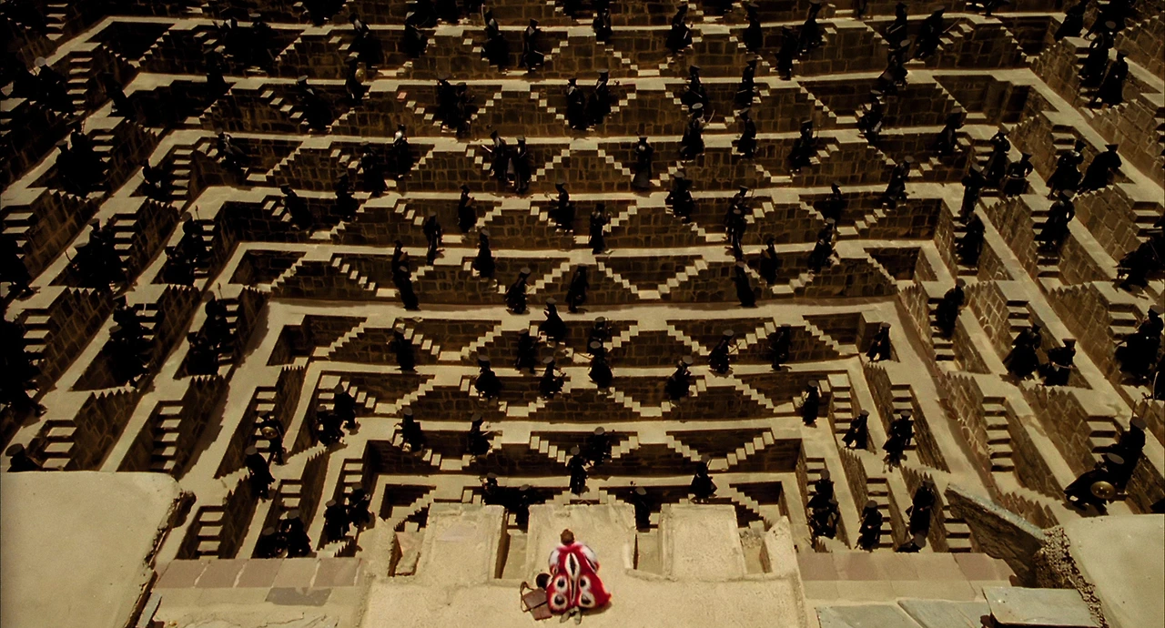 그렇게 <더 폴>은 두 개의 세계를 번갈아 오가며 두 가지 이야기를 보여 준다. 하나는 이미 현실 세계에서 <추락>을 겪은 두 사람의 이야기고, 또 하나는 로이가 들려 주는 판타지 세계의 이야기 속 이야기다. 현실의 이야기는 병원이라는 작은 세계를 공간적 배경삼아 진행되는 반면, 이야기 속 이야기는 압도적이고 장엄한, 정말 ‘상상 속’ 광경처럼 보이는 스펙터클한 무대를 배경으로 진행된다. 그러나 이렇게 서로 완전히 달라 보이는 두 이야기는 온전히 서로에게 독립적이지 않다. 둘은 끊임없이 서로 영향을 주고받는다. 타르셈 싱 감독은 이런 구조를 통해 두 가지 아이디어가 하나의 영화 안에서 서로 대화하며 하나가 되게 만든다. ‘만드는 사람’과 ‘그것을 찾는 사람’의 입장이.