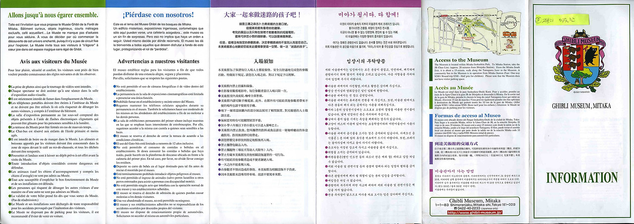 제가 지브리 박물관을 방문했을 때 받았던 한국어 리플릿인데요, 이렇게 쓰여 있네요.