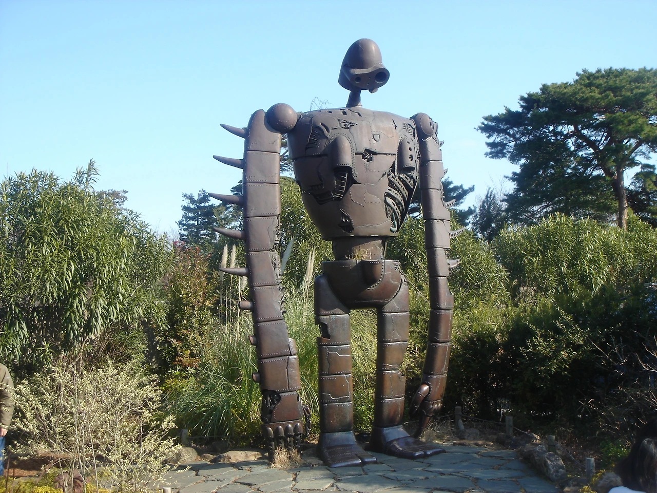 그렇습니다. 이곳의 설립자인 미야자키 하야오는 일률적인 관람동선보다는 관람객들이 알아서 전시실을 찾아다니세요 라는 재미있는 생각을 한 것 같습니다. 정해진 관람 순서가 없어서 관람 방향과 순서 역시 방문객 스스로 정하는 곳. 출구가 어디인지, 옥상정원은 어디로 가야 올라갈 수 있는지 알려주지 않는 곳. 이리저리 관람하다 보면 어느새 옥상에 다다르게 되고 거기엔 야생화 같은 풀숲을 지키고 있는 로봇 전사가 떡하니 버티고 있는 곳. 세세한 설명보다는 스스로 느끼고 몸으로 놀 수 있는 곳을 만든 것 같습니다.