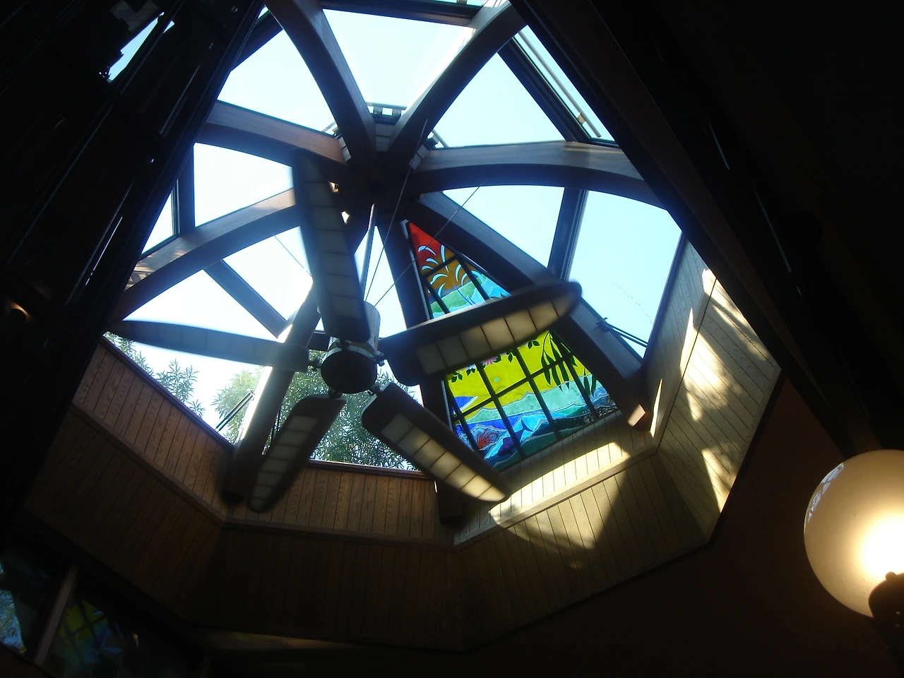 일단 홀이 굉장히 크고 독특합니다. 2개의 층이 뻥 뚫린 공간으로 천정의 유리돔은 자연채광시설로 맑은 햇볕을 안으로 끌어들이기에 충분하게 디자인되어 있습니다. 유리돔 일부에는 바다에서 수영하는 노란 고래와 여동생과 함께 수영하는 판요가 프린팅 되어 있고 큰 선풍기도 회전하고 있습니다.
