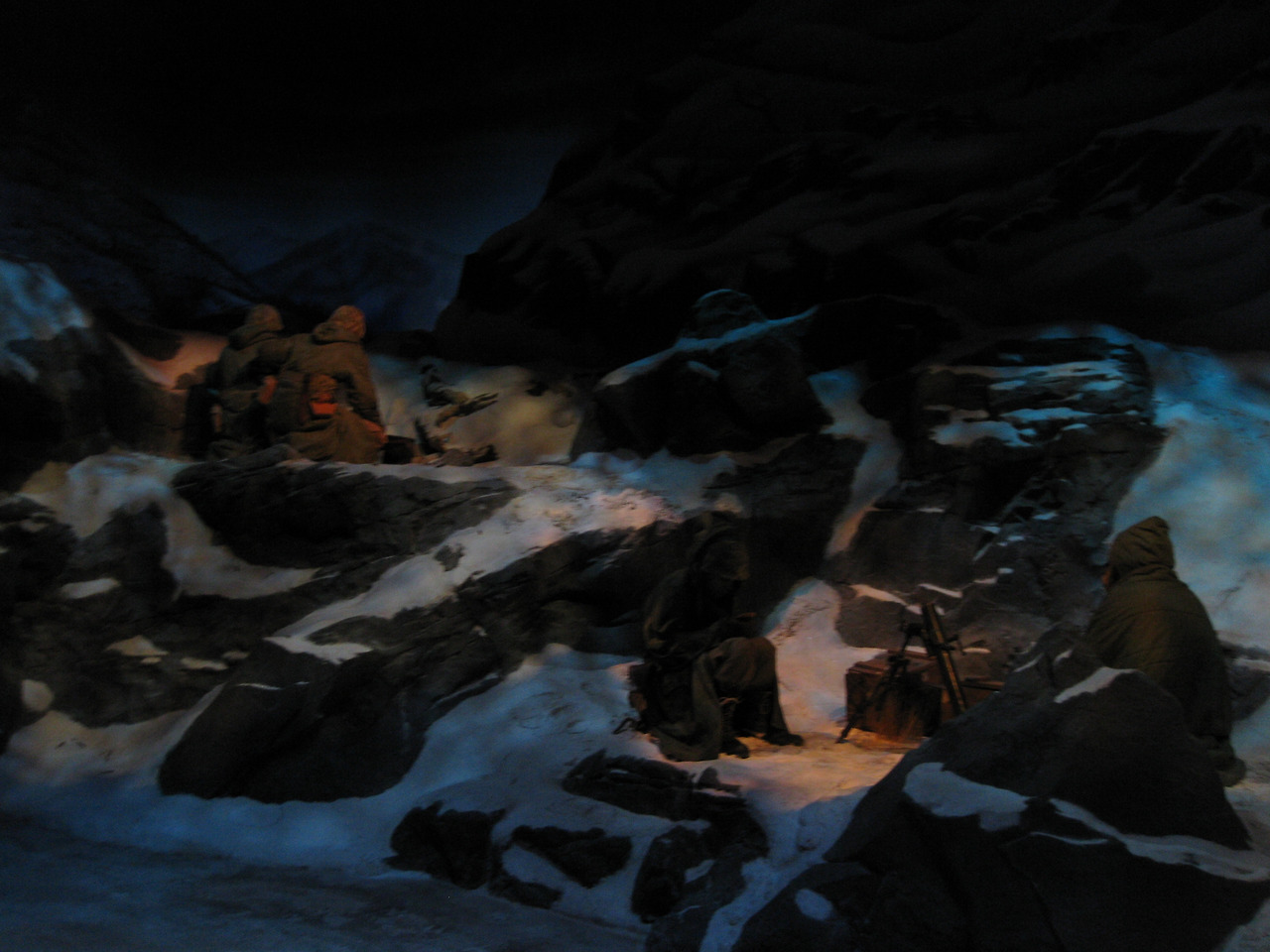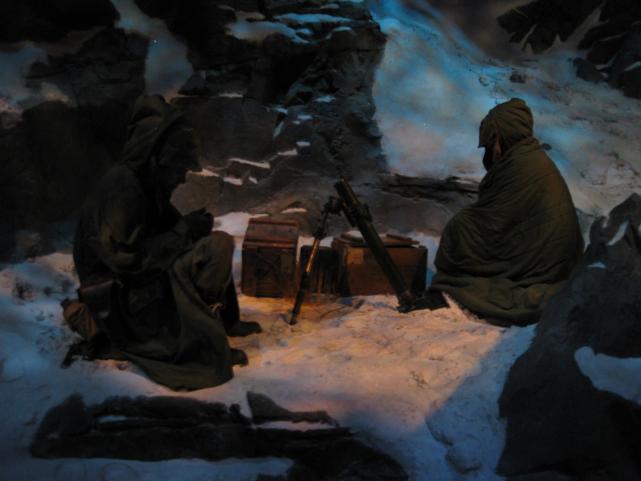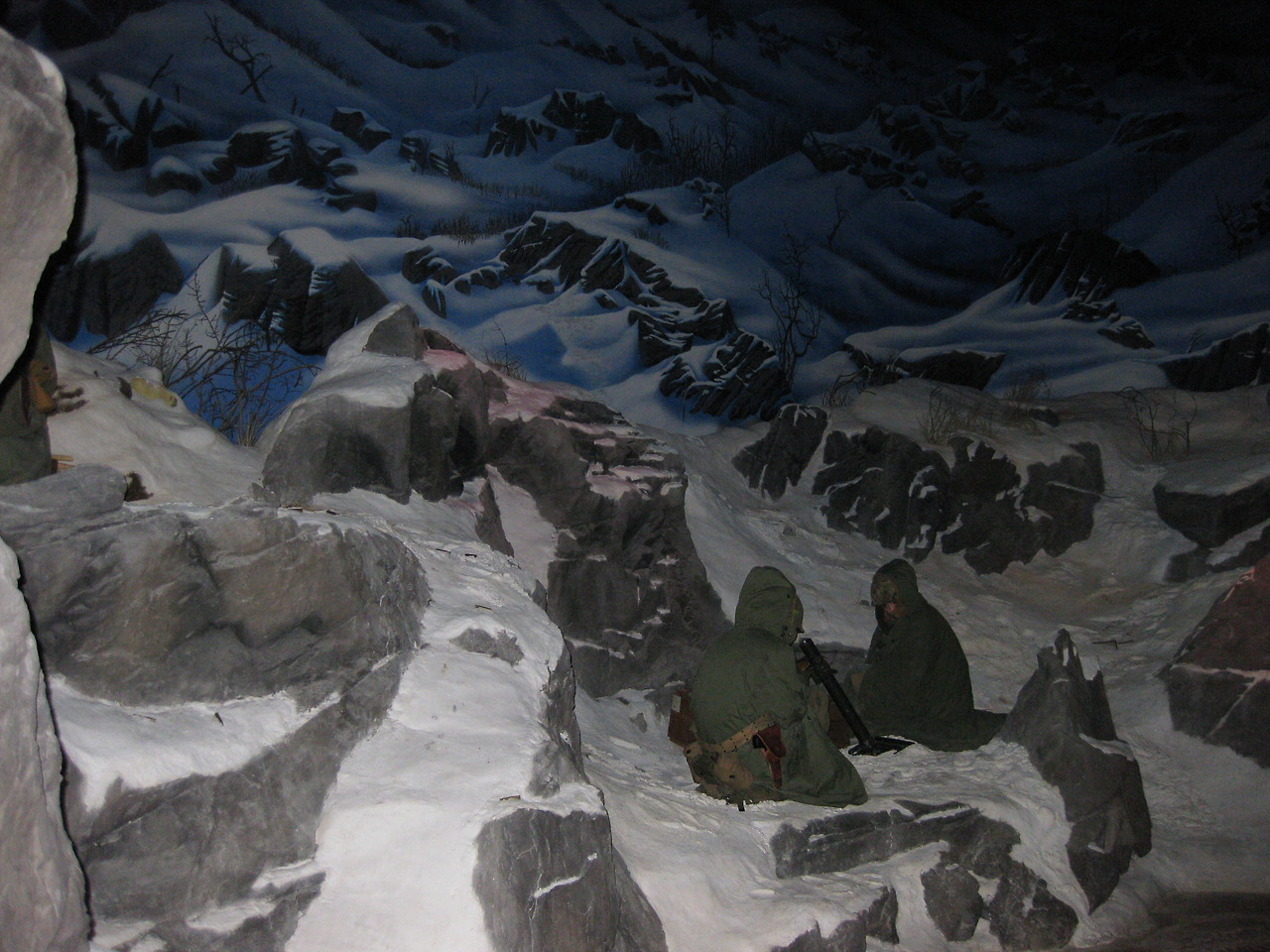 딱 봐도 이해되시겠죠. 아마 압록강까지 진격했다가 중공군의 개입으로 후퇴하는 장면 같은데, 하필 추운 겨울이었습니다. 위 사진은 아마도 장진호 전투(1950년 11월 미 제10군단 예하 미 제1해병사단이 장진호 북쪽으로 진출하던 중 중공군 제9병단 예하 7개 사단과 충돌하여 2주간에 전개한 철수작전)을 디오라마 모형으로 재현한 것 같습니다.