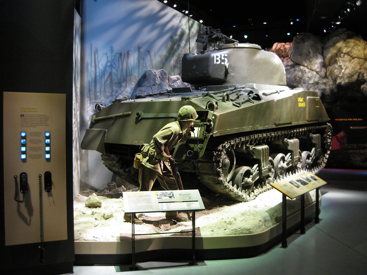건물도 웅장하고, 규모도 꽤 큽니다. 단순한 해병대의 역사와 사건을 글과 그림으로 기록하는 곳이 아니라 역사적인 사건들을 쉽게 이해하고 공감하도록 하기 위해 전쟁에 사용된 실제 장비를 전시하고 단순한 디스플레이의 개념을 넘어 전투 상황을 1:1 모형(사람 크기 대비 동일한 규격)으로 재현하여 관람객들이 실제 전장에 서 있는 듯한 효과를 주고 있습니다.