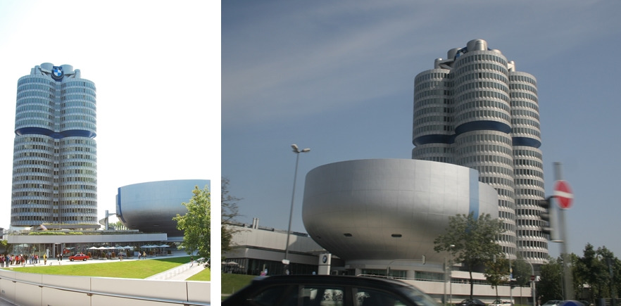 뮌헨에 있는 BMW 박물관 전경입니다.