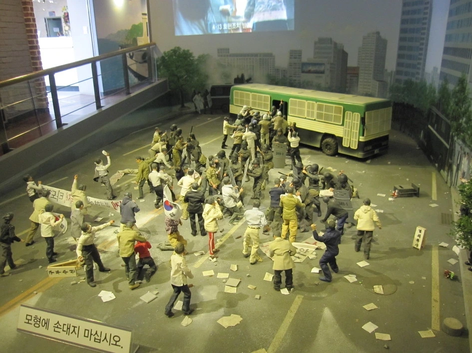 둘째. 축소모형의 디테일. 부마항쟁, 6월 항쟁등 당시의 상황을 충분히 이해될 수 있게 축소 디오라마 모형이 연출되어 있습니다.