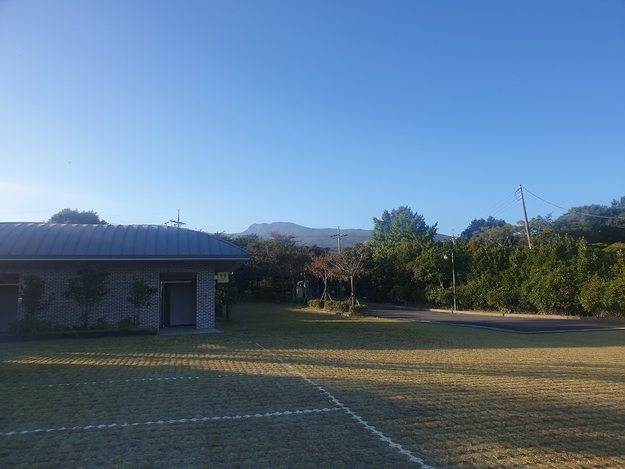 좌측은 한란전시관 건물이고 우측은 전시관 주차장마당입니다. 저 멀리 한라산 정상이 보입니다.