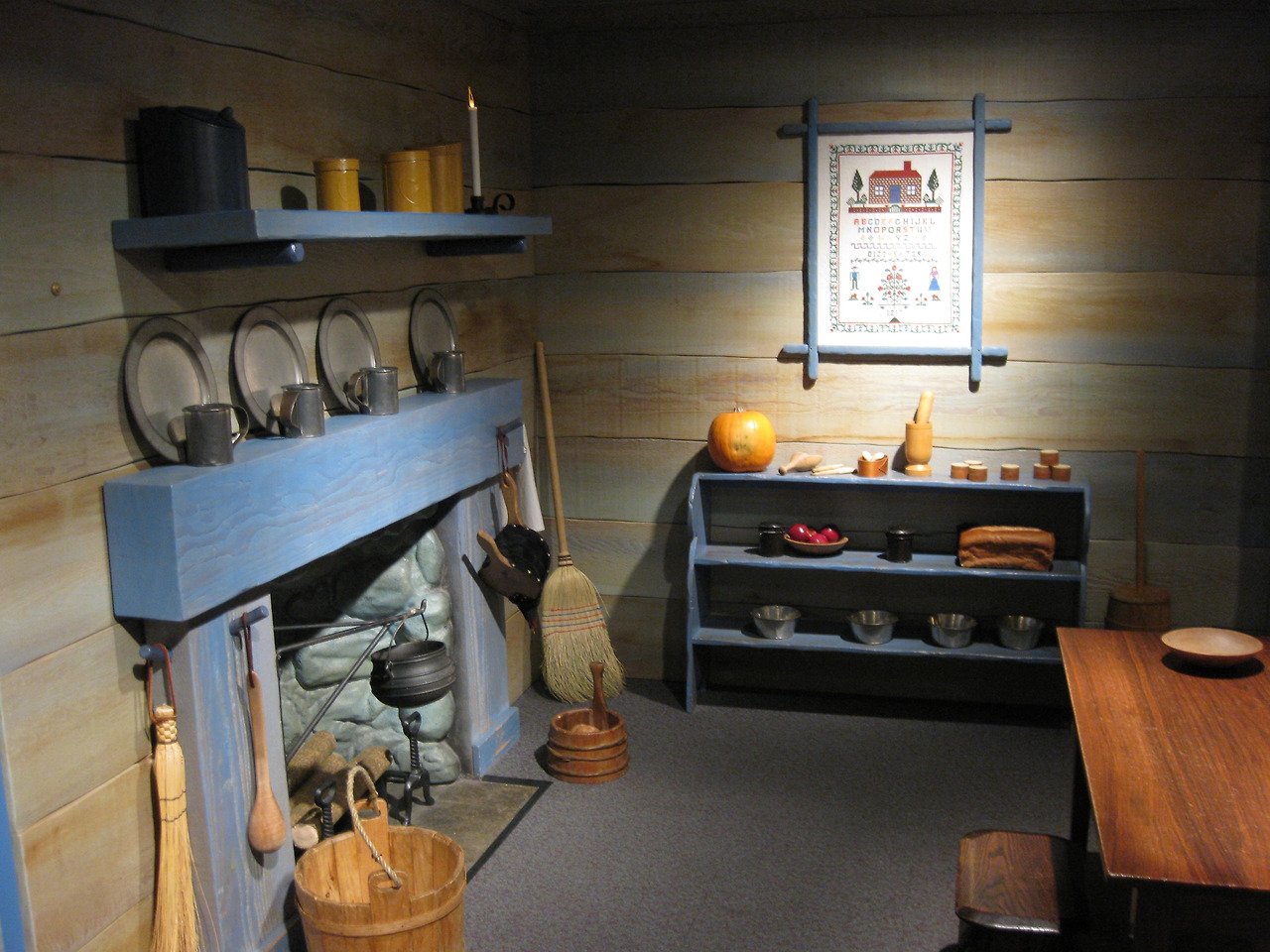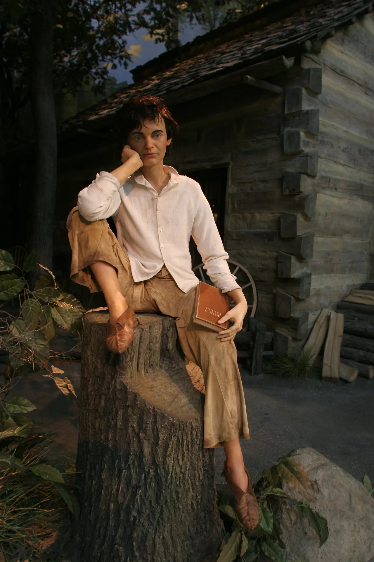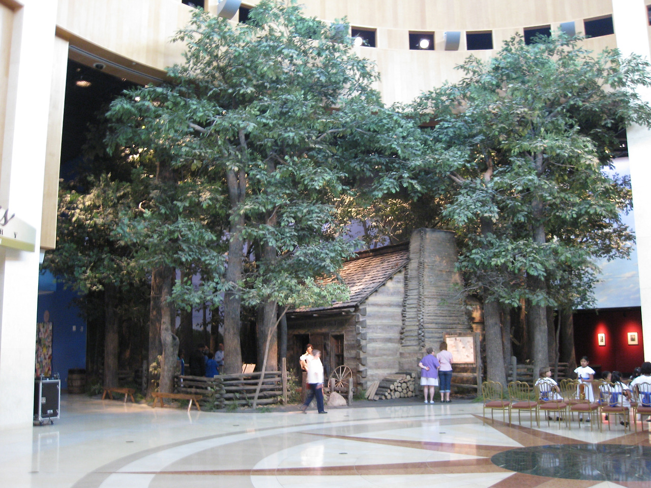 박물관 내부 전시실. 링컨의 어렸을 적 집 내부 연출. 어렸을적 링컨 모형