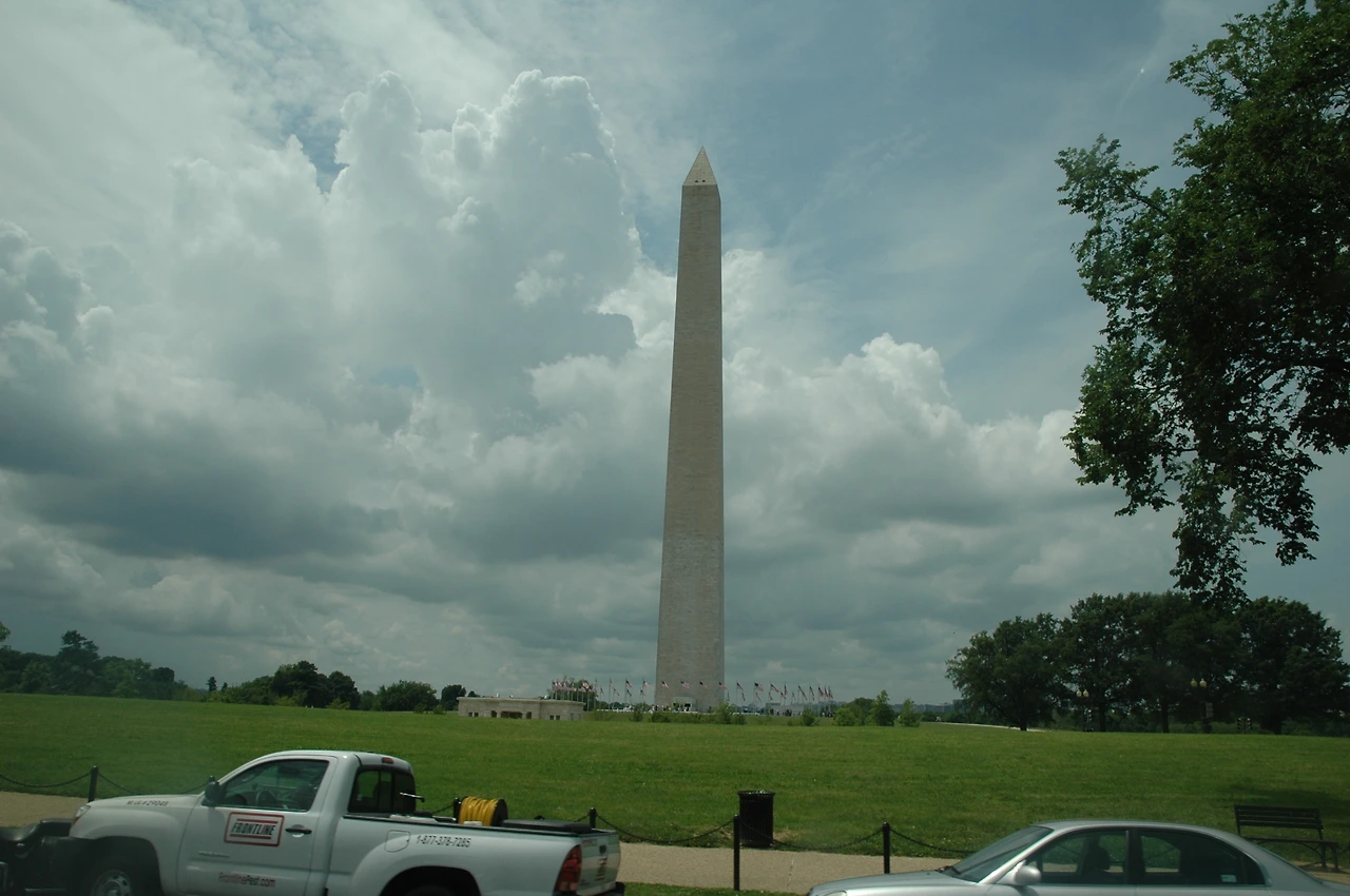 이 워싱턴 중심가에는 워싱턴을 상징하는 모뉴먼트인 '워싱턴 탑'이 자리하고 있습니다. 워싱턴 어느 곳에서도 잘 보이는 상징물입니다. 높이가 168m나 되는데, 초대 대통령인 조지 워싱턴을 기리기 위해 세운 이집트 오벨리스크 양식의 석조탑 건물(1848년에 시작하여 1884년 완공)입니다.