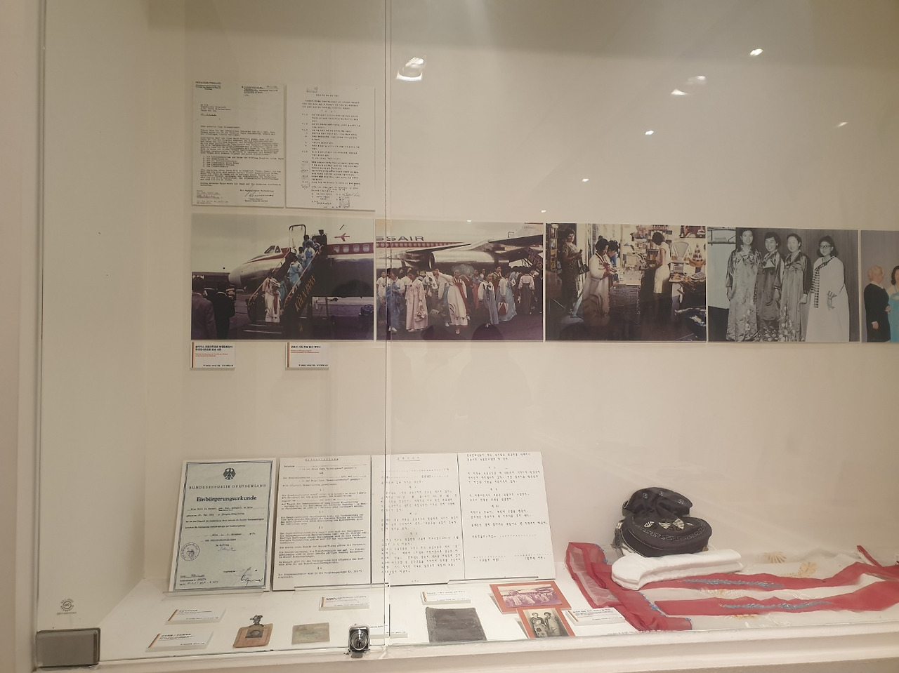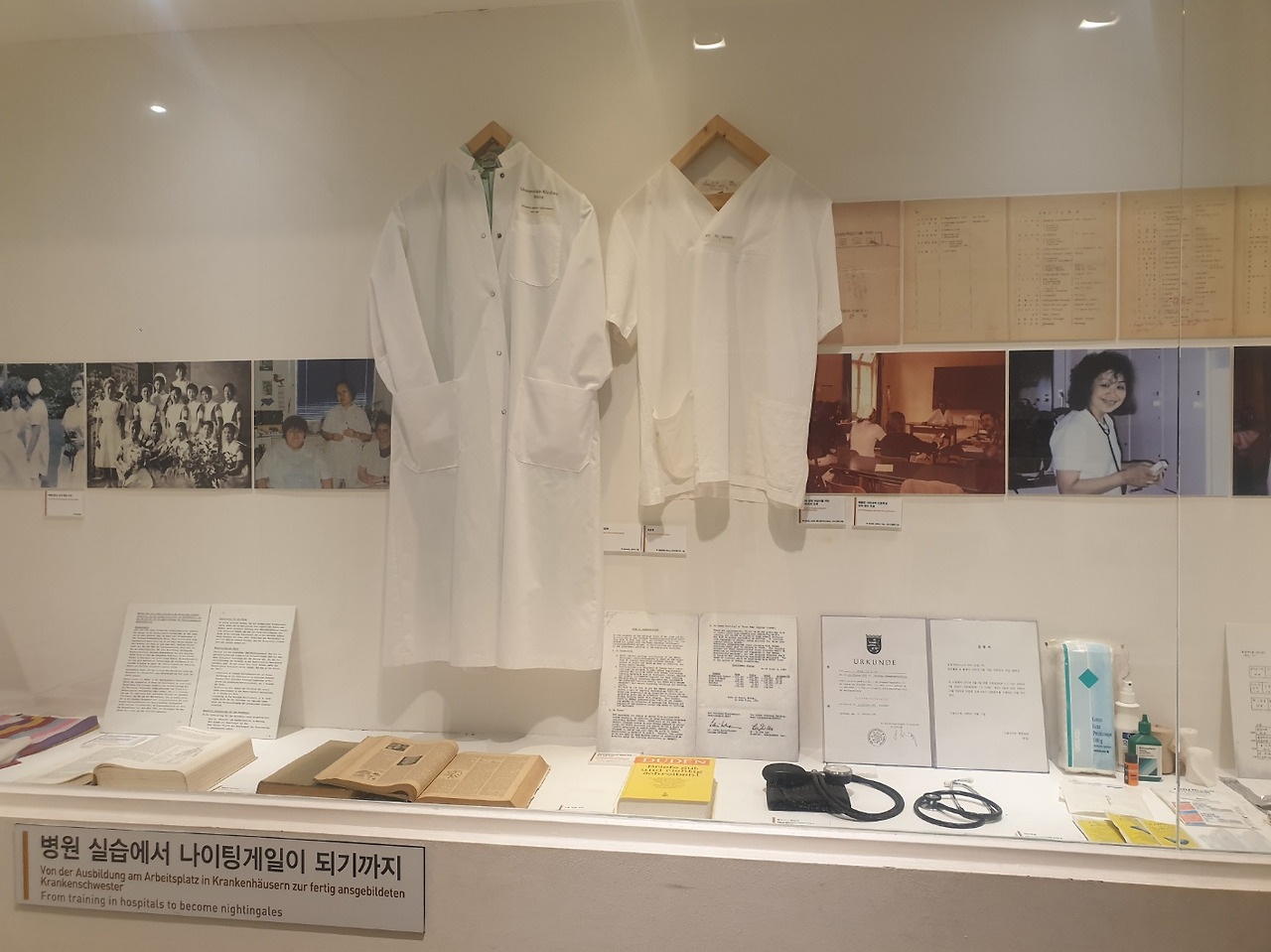 좌측이 광부 관련 쇼케이스 우측이 간호사 관련 쇼케이와 유물이 배치되었습니다.