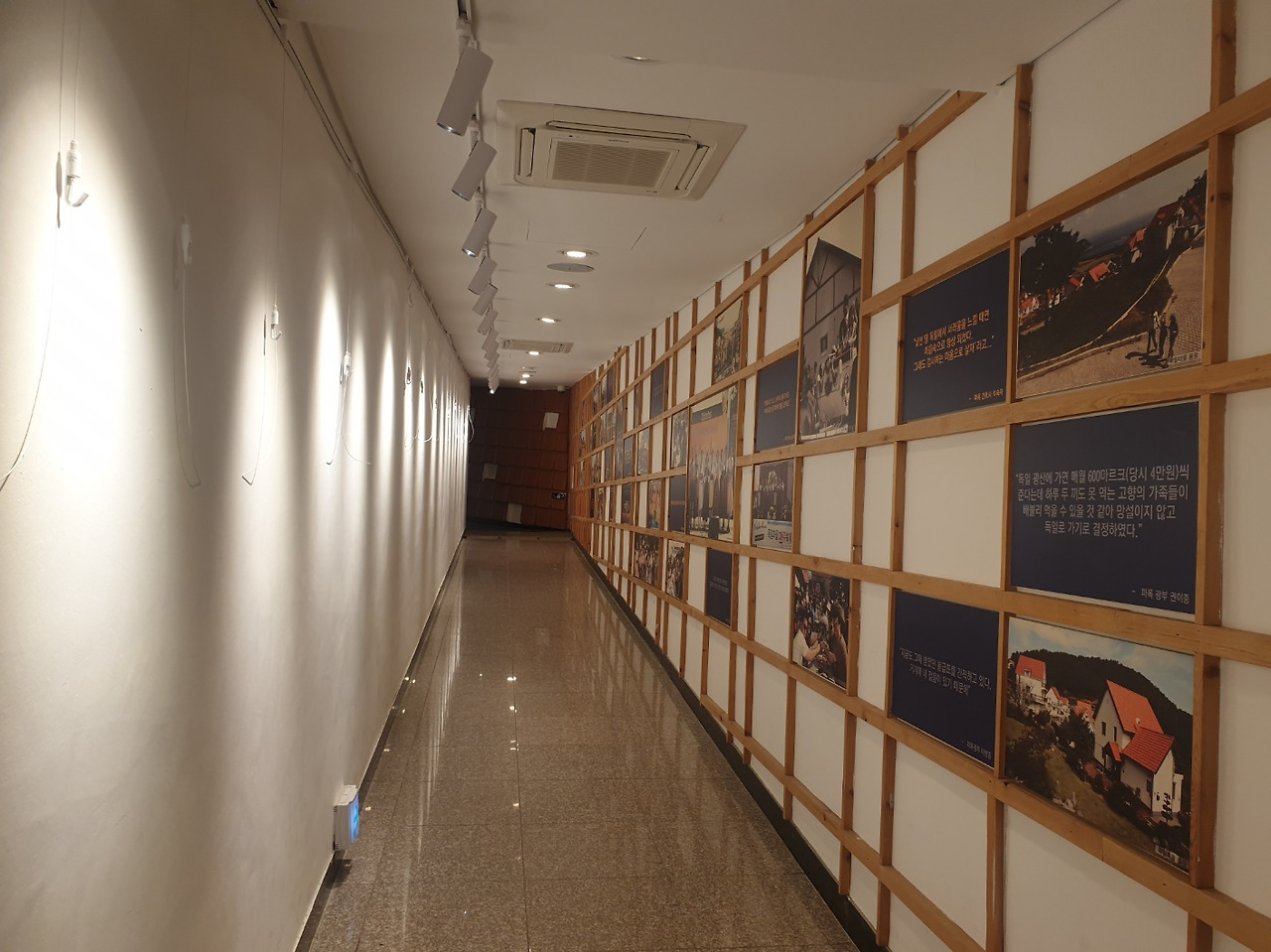 통로식 슬로프 이동 공간 벽며에는 시대연표, 독일마을 조성 내용을 소개하는 패널이 배치되었습니다.