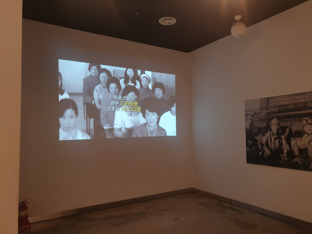 그리고 조그마한 영상실이 있습니다. 프로젝트 영상으로 파독의 시대적 배경과 독일에서의 근무생활, 독일마을 조성 내용을 다큐형식의 영상으로 상영됩니다.