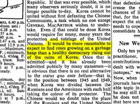1951년 10월 1일에 영국 더 타임스에는 War and Peace in Korea라는 기사가 실립니다.