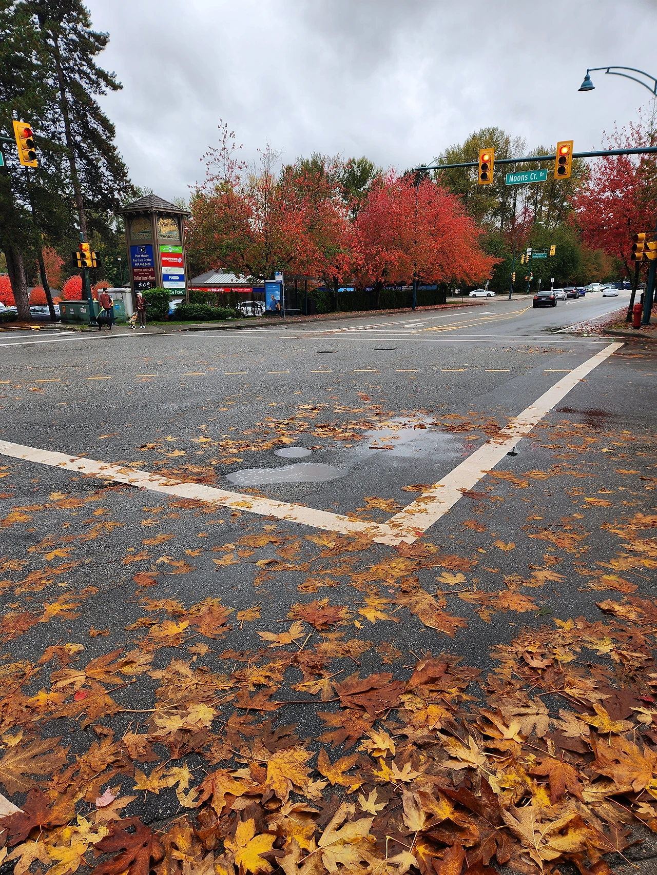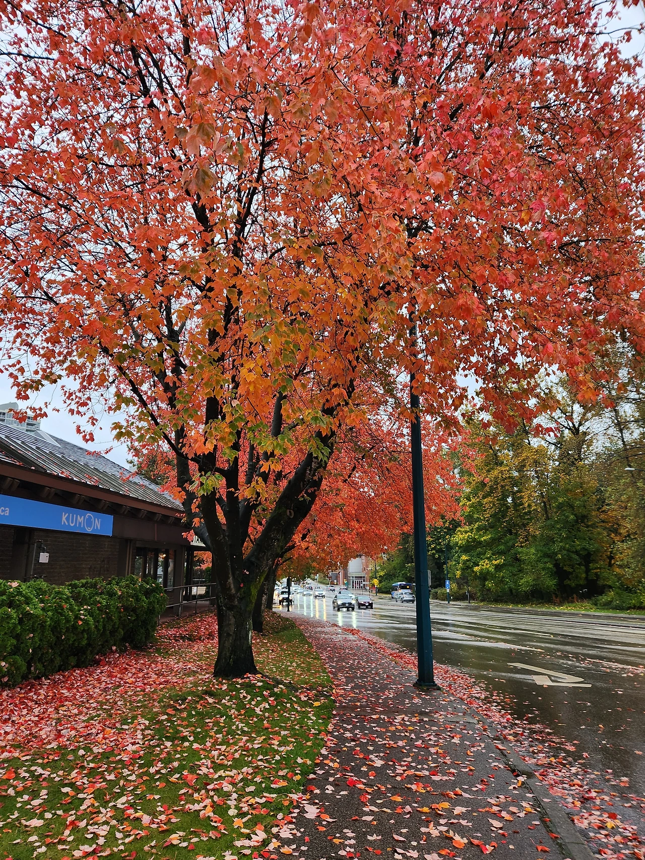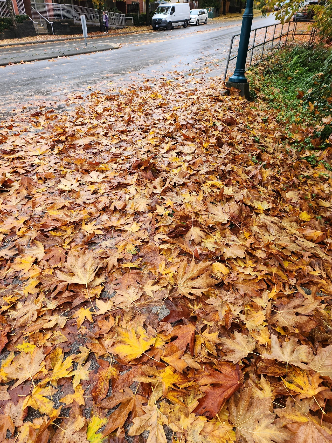 젖은 낙엽이 포장도로처럼