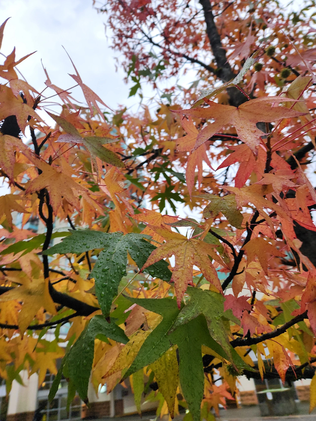 세 찬 빗줄기 속 절정을 맞은 단풍