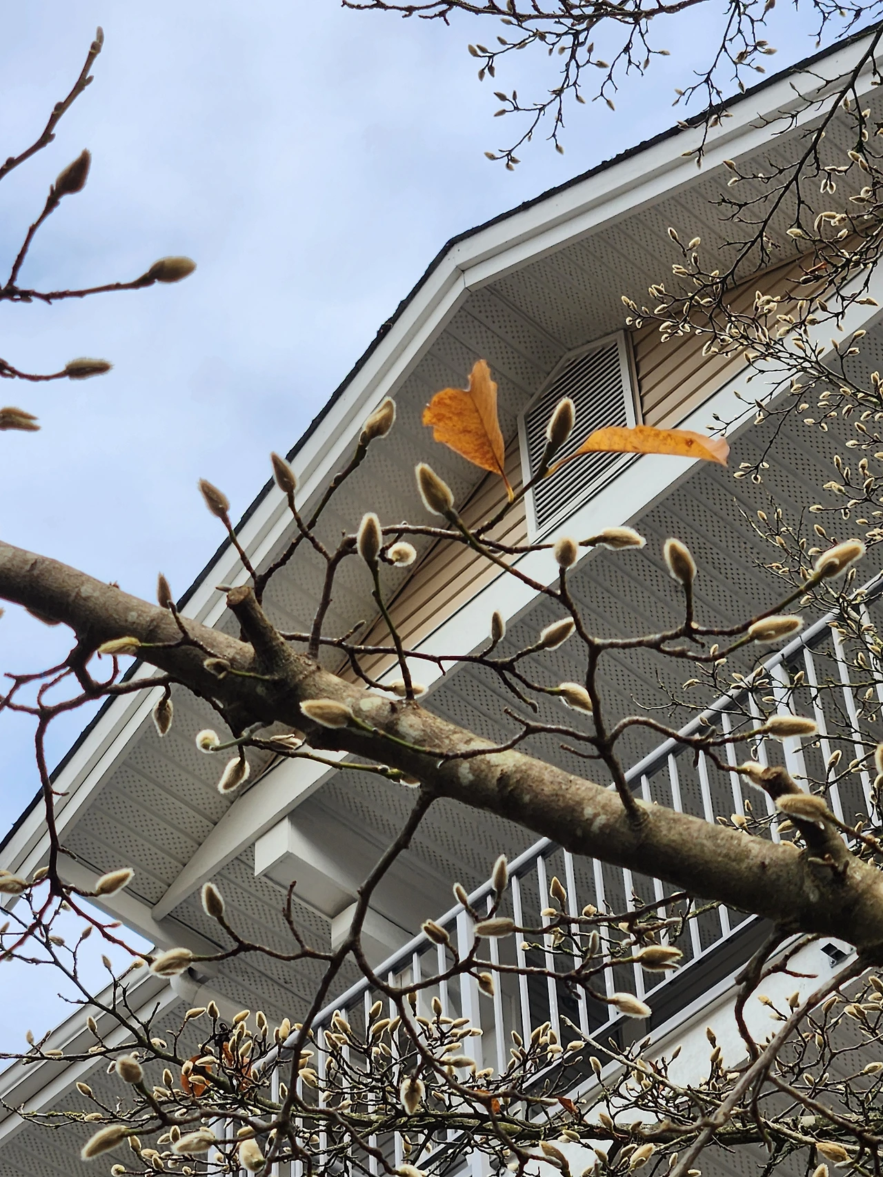 잎이 다 떨어진 자리에 새 생명이 움트는 중