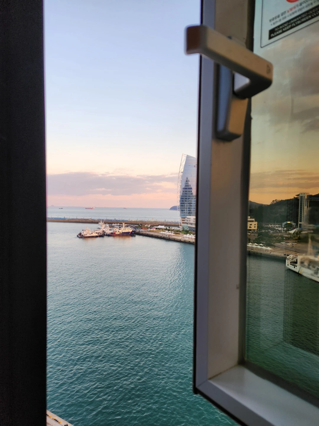 여수 베네치아 호텔 13층에서 내려다보는 바다
