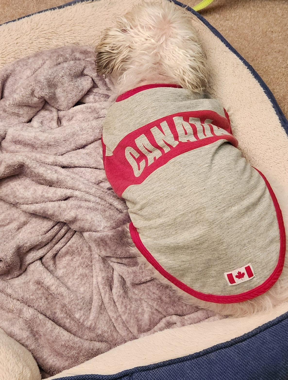 성긴 털 위로 얇은 면 옷을 입힌다.