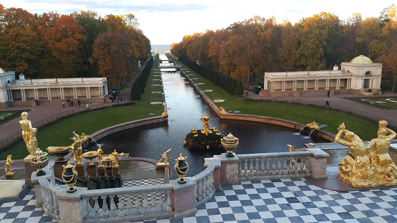 공원은 윗공원과 아랫공원으로 나누어졌는데, 윗공원은 아랫공원을 가는데 양념으로 보는 곳으로써, 아랫공원 입장료만 받는다. 엄청난 넓이, 마치 황금으로 많든 것 같이 노랗게 빛나는 조각상들은 러시아의 힘을 관람객들에게 과시하려는 것 같다.
