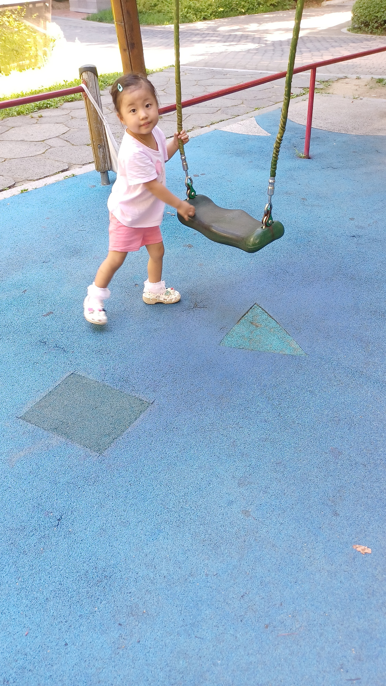 손주를 등에 업고 놀이터에 갔으나 아직은 이른 시간이라 놀이터에는 우리 둘 말고는 아무도 없었다.