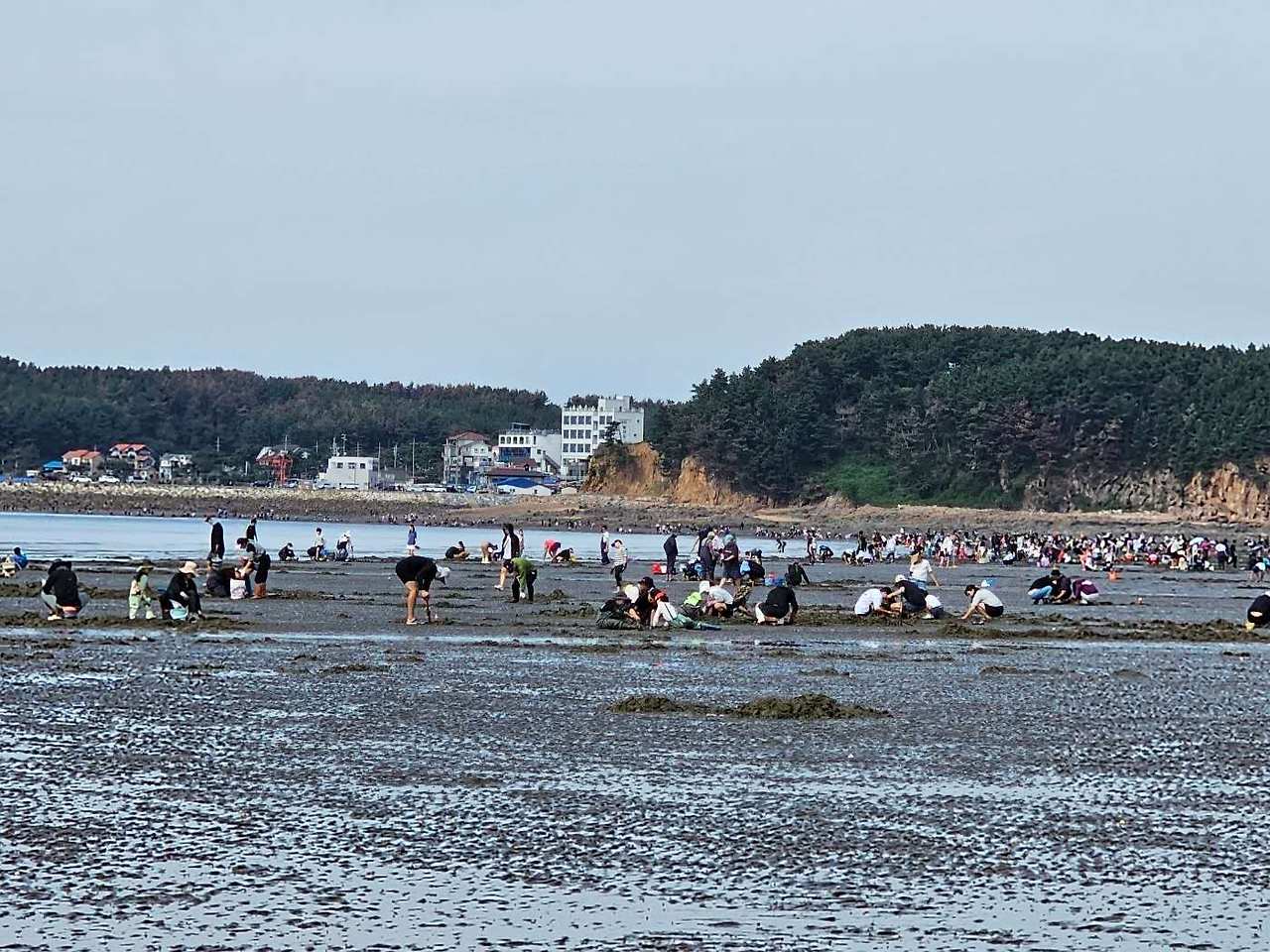 물이 빠지기 시작하자 아이 손을 잡고 조개를 캐는 가족들이 눈에 들어왔다.