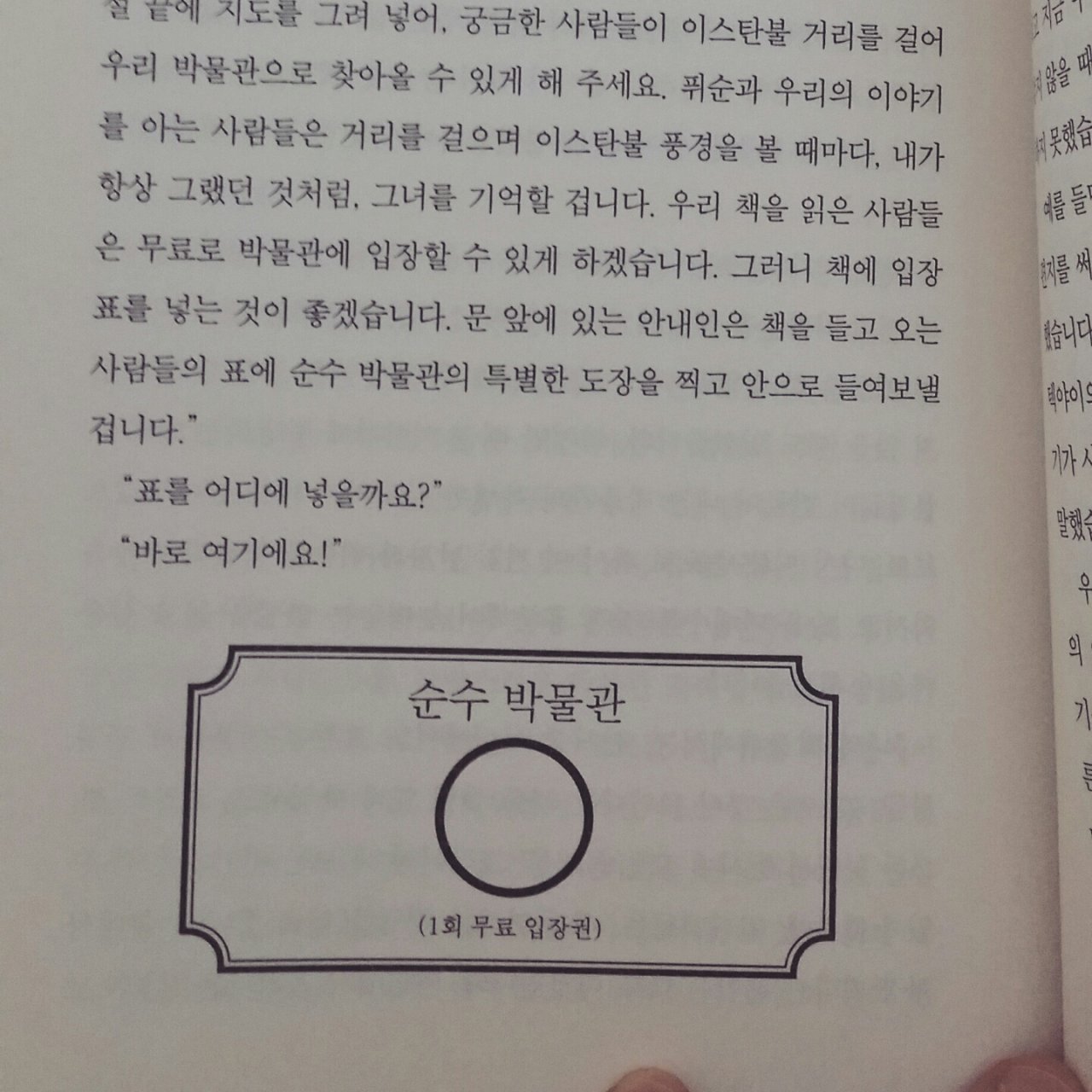 소설가 오르한 파묵은 소설 83장에 걸쳐 나오는 물건들을 전시하려고 그녀에 관한 일상사 박물관을 이스탄불 한 구석에 2014년에 실제로 개관했다고 한다. 소설책 끝부분에 책을 읽은 사람들에게 제공되는 박물관 무료 입장권이 나온다. 소설 안에 입장권이 출현한 거다.ㅎㅎ