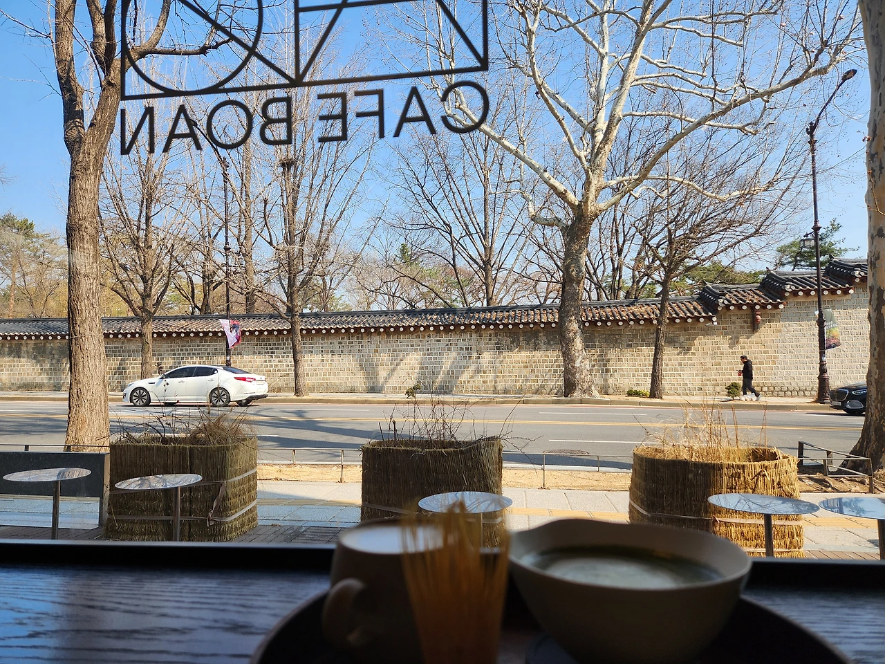 한옥의 기와지붕 사이로 파란 하늘이 보인다. 겨울을 지나 봄이 오는 계절에 외출을 하려고 나서면 춥지도 덥지도 않은 딱 좋은 기온이 온몸을 휘감는다. 눈물이 나올 정도로 감동적인 순간이다. 추운 겨울엔 걸으면서 외부의 세계를 즐기기가 쉽지 않다. 한결 가벼운 옷차림으로 거리를 산책할 수 있는 좋은 계절이 온 것이다. 지난 주말에 경복궁 둘레길을 따라 걷다가 궁 담장 뷰의 카페에 들어가 <쑥 라테>를 마시며 오랜만에 한가로운 시간을 보냈다.