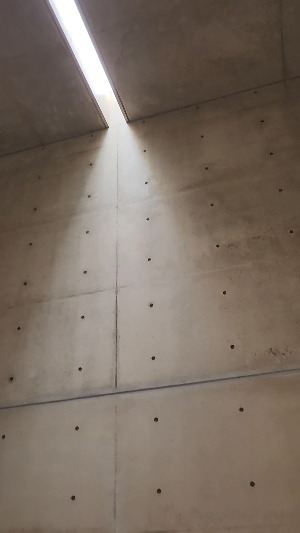 들뜬 마음으로 천천히 걸으면서 야외에 전시되어 있는 작품들을 본 후, 안도 타다오의 빛의 공간으로 들어가 본다. 천정이 십자모양으로 뚫려있어 노출콘크리트로 되어 있는 공간에 빛이 들어온다. 마음이 경건해진다.