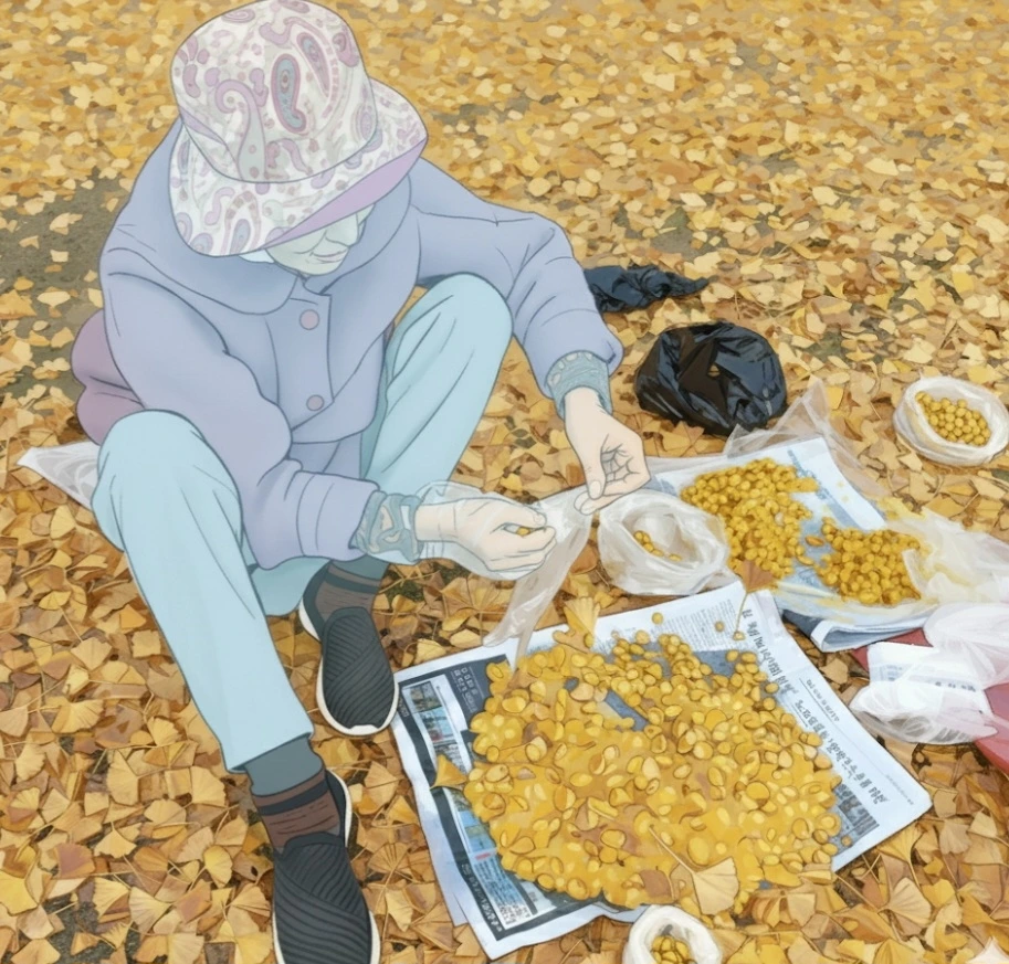말이 은행털이지 털긴 어떻게 가로수를 털어? 나무 아래 떨어진 것을 줍는 것인데 은행 줍기보다는 그래도 거창하게 은행털이란 말이 그래도 재미있지 않나. 은행이란 말이 뱅크란 은행과 같으니 은행 줍기나 은행털이나 마치 할머니 자신이 은행강도가 된 기분을 함께 맛보려는 게 아닌지 싶다. 할머니 자신이 생각해도 우스운지 피식 미소를 지었다.