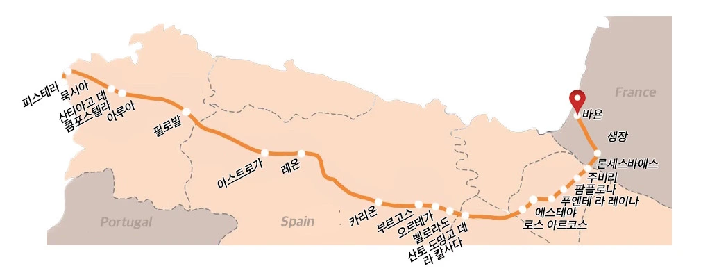 한숨 돌릴 틈도 없이 기차 안 앉을자리를 찾아 헤맸다. 목적지인 생장까지는 한 시간이 넘게 걸리기 때문이다. 기차 안 모든 승객이 마치 순례자인 마냥, 큼지막한 가방들이 빼곡히 기차 안을 차지하고 있어 발걸음을 옮기기 쉽지 않았다. 앉을자리도 보이지 않는다. 기차 옆 칸으로 이동했다. 마땅한 자리를 찾을 때까지 다시 또다시 옆 칸으로 이동. 그러는 사이 기차는 문을 닫고 출발하고 있다. 흔들리는 기차 안, 사람도 많고 배낭도 많다. 나는 사람들과 배낭을 뚫고 기차의 꼬리 쪽까지 이동했다. 출입구 쪽에 옆으로 긴 좌석 중간, 한 자리가 보인다. 자리가 비좁지만 어쩔 수 없었다. 이 피곤에 쩌든 내 몸뚱이를 앉히지 않으면 안 될 것 같았다. 나는 틈을 비집고 자리를 차지했다. 불편한 좌석이지만 한 시간 동안 앉아서 갈 수 있어 다행이었다.