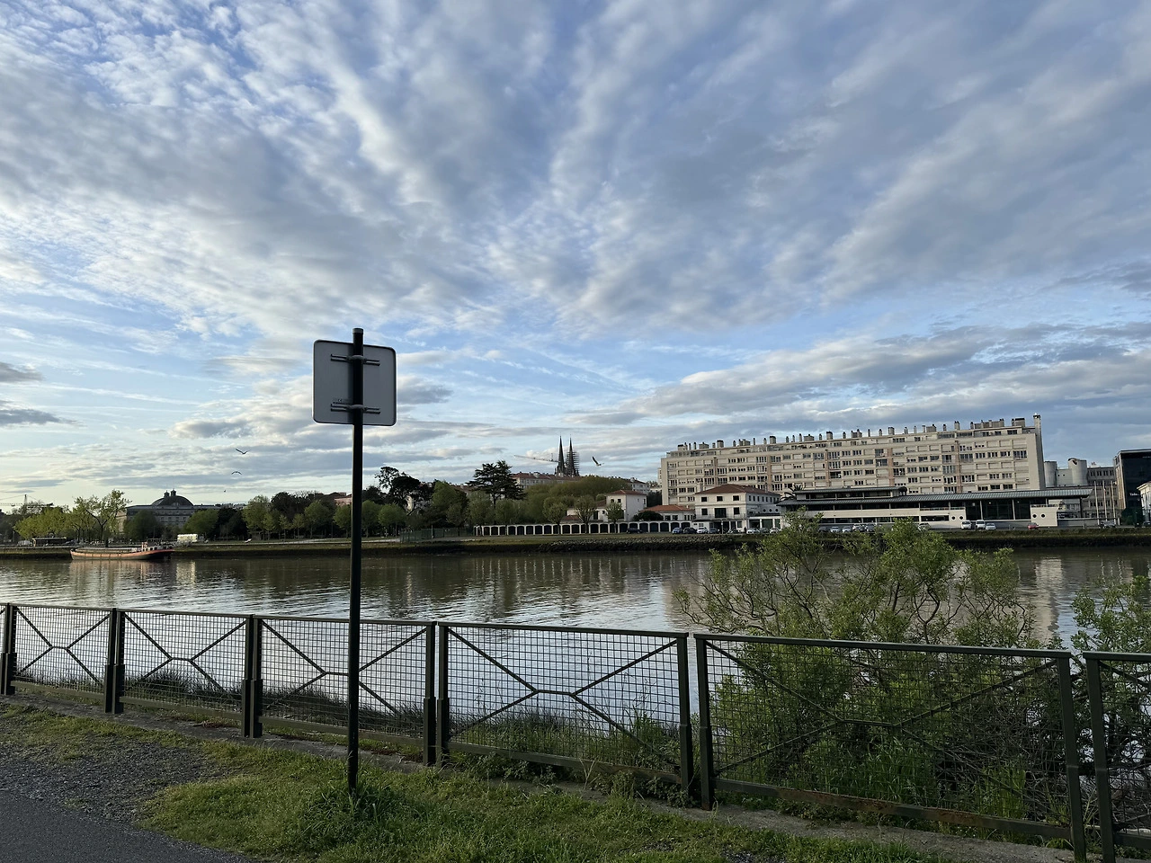 야간버스를 타고 바욘에 도착했다. 어젯밤 열 한시쯤 출발한 버스는 오늘 아침 일곱 시가 돼서야 목적지에 도달한 것이다. 약 8시간 동안 좁은 버스 공간 안에서 꼼짝하지 못하고 앉아서 선잠을 자며 달려오니 온몸이 뻐근하고 신경이 한껏 예민해진 상태이다. 얼굴에 피곤을 잔뜩 뒤집어쓴 채, 버스에서 내렸다. 내리자마자 마주한 바욘의 아침 풍경은 나와는 상반되게 상쾌하고 신선했다. 따뜻한 햇살이 차가운 새벽의 기운을 흡수하고, 뽀송하게 맑은 공기를 내뿜었다. 켜켜이 얇게 쌓인 하얀 구름이 푸른 하늘 배경을 장식하듯 걸려있고, 도로를 따라 길게 뻗은 개울 표면엔 하늘 풍경을 데칼코마니 같이 그대로 담아냈다. 이 신선하고 아름다운 것을 온전히 받아들일 정신을 갖추지 못한 나는 터벅터벅 힘없는 발걸음으로 기차역을 향해 걸었다.
