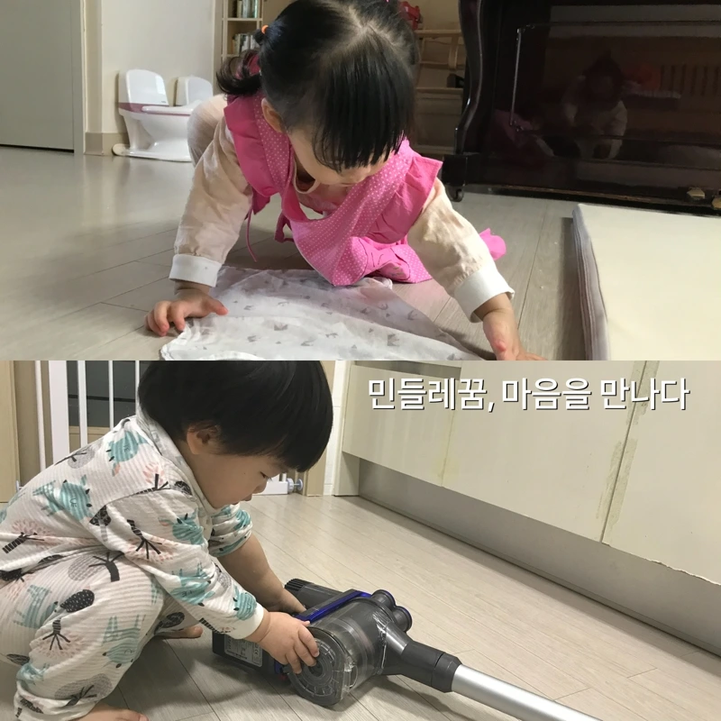 22개월 천둥번개가 청소에 관심이 많습니다. 천둥번개가 수건으로 바닥을 닦기도 하고, 청소기에도 관심을 크게 보입니다. 그런데 어른들이 둘의 모습을 보고 천둥이에게는 "청소업체 사장이 되려나"라고 하거나 아무 말을 하지 않는데, 번개에게는 "천생 여자다"라고 말하기도 합니다. 사실 번개가 천생 여자라서 청소를 하는 건 아닙니다. 천둥번개 둘 다 엄마나 돌봄 선생님이 하시는 행동을 따라 하는 겁니다. 그런데도 동일한 행동에 대한 평가가 아이의 성별에 따라 달라질 수 있습니다. 그래서 저는 이렇게 말하려고 합니다.