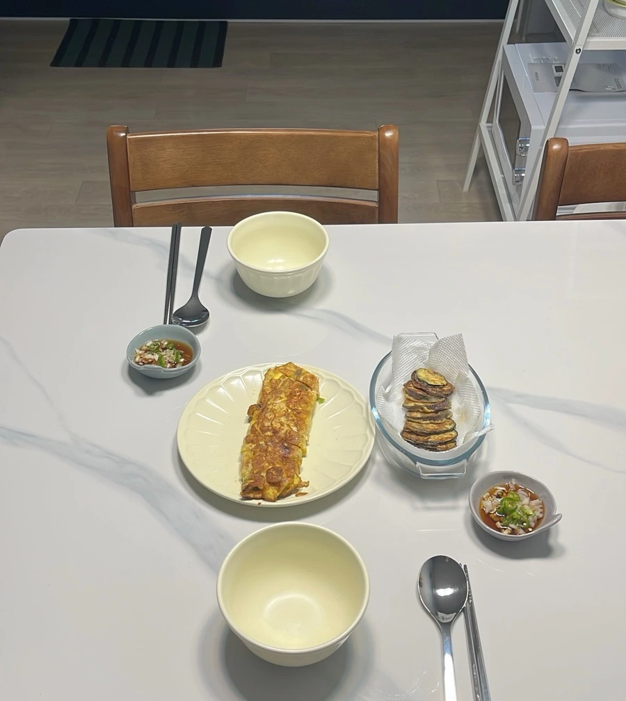계란물도 얇게 묻혀서 부치시면 됩니다.