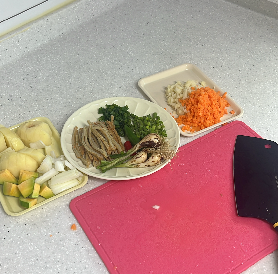 마늘종과 쪽파를 썰었고,