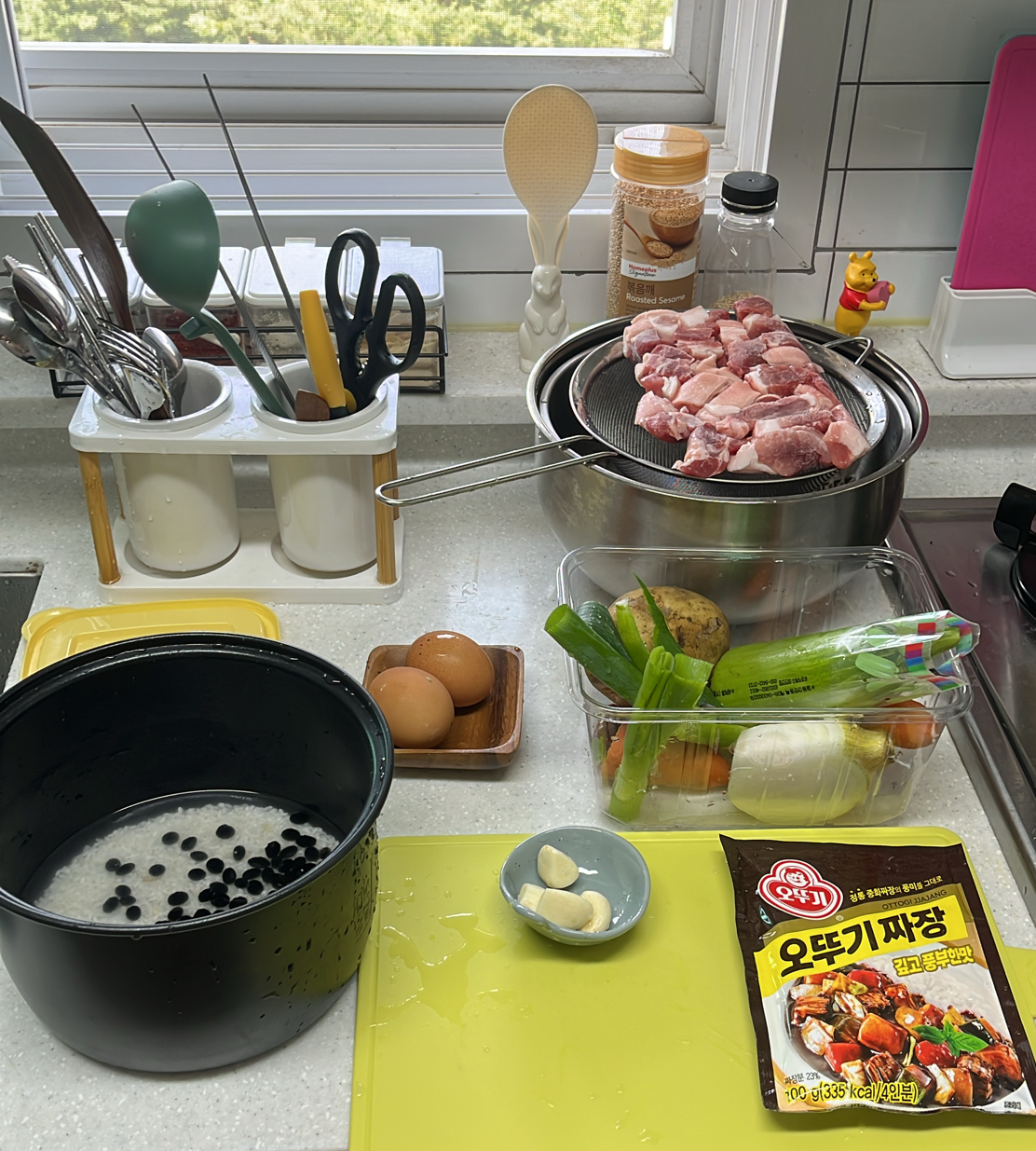 인천 정서진 중앙시장 정육에서 구입한 돼지고기 한 팩이 아직 남아서 짜장에 한 번, 카레에 한 번 먹어보려합니다. 요즘 저는 콩밥을 먹고있습니다.