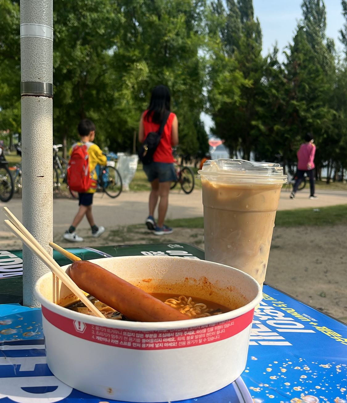 도착해서 한강에오면 라면은 필수.