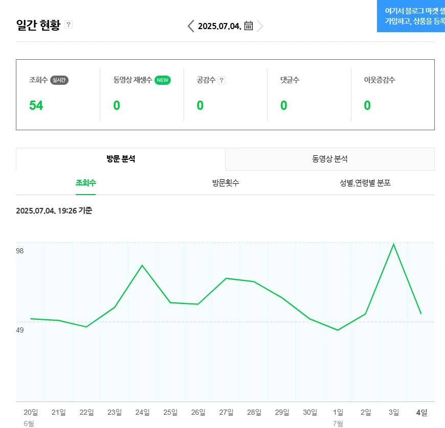 오늘 기준 조회수는 54
