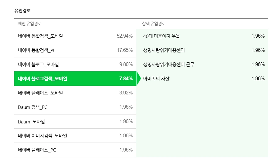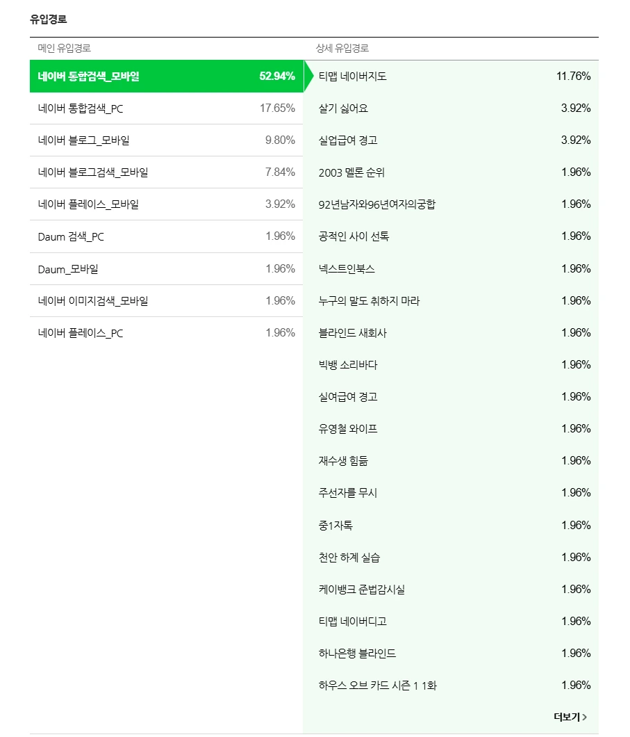모바일 (즉 휴대폰으로 검색) 검색이 제일 많네요. 52% 이상